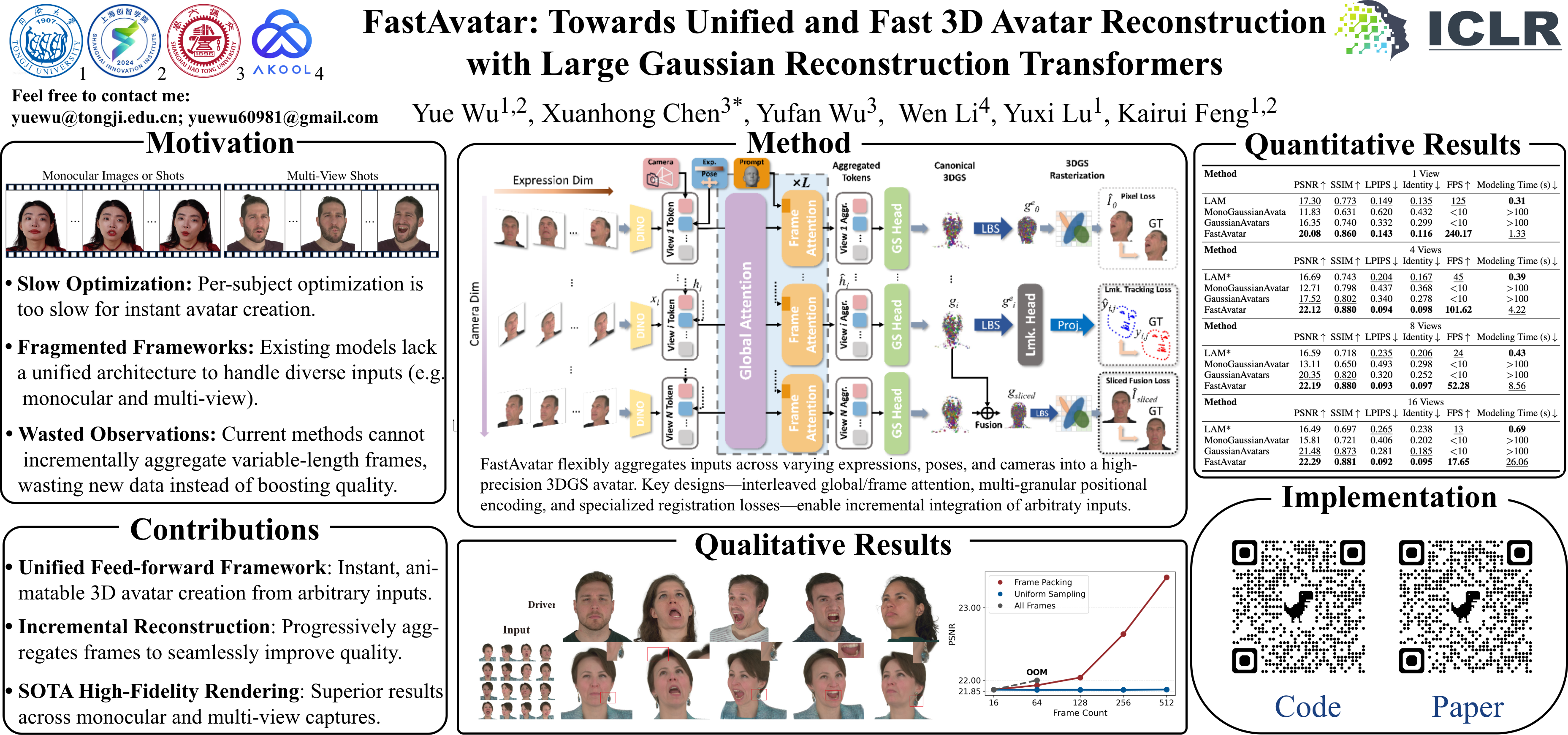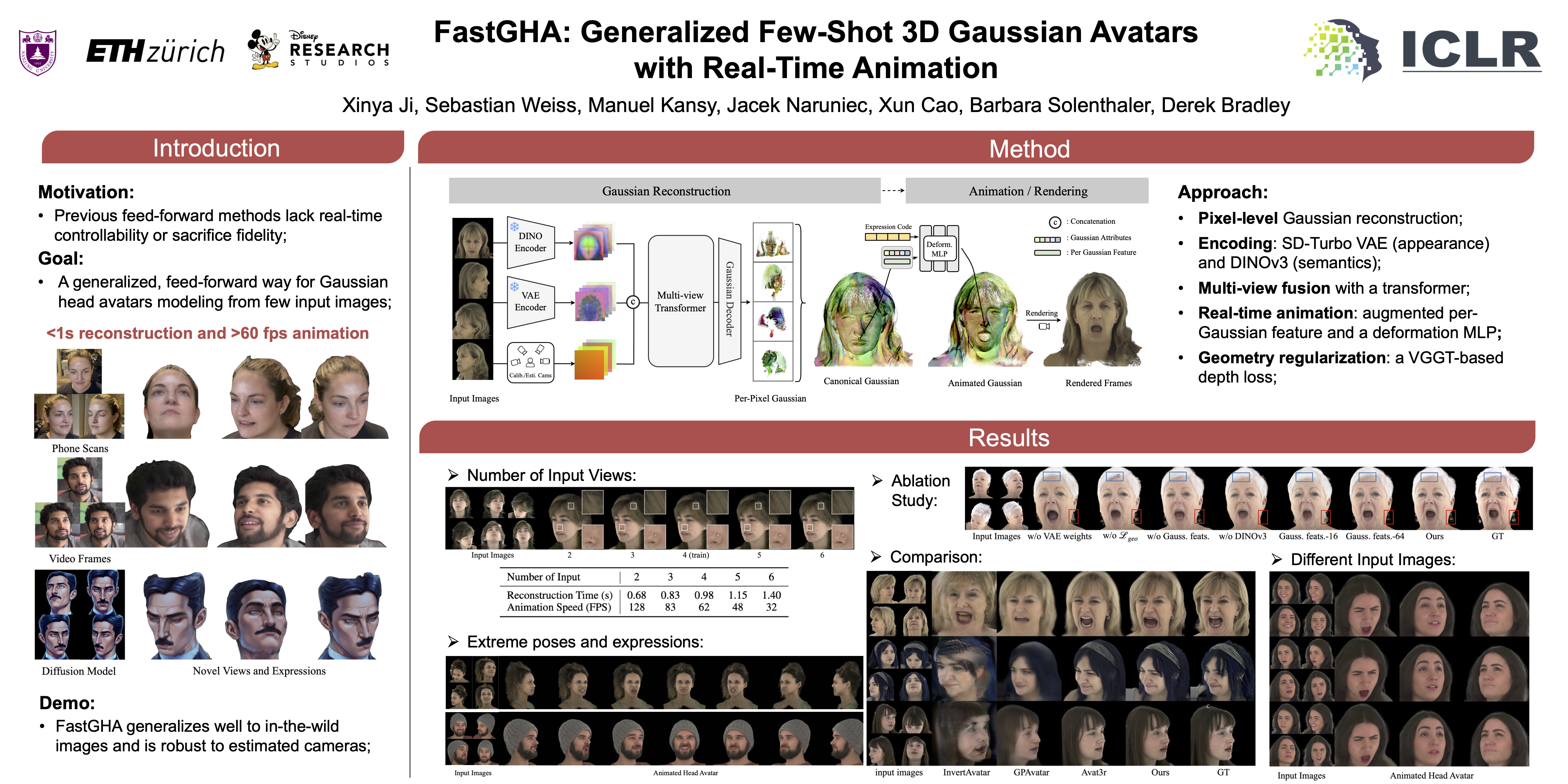FastGHA: Generalized Few-Shot 3D Gaussian Head Avatars with Real-Time Animation