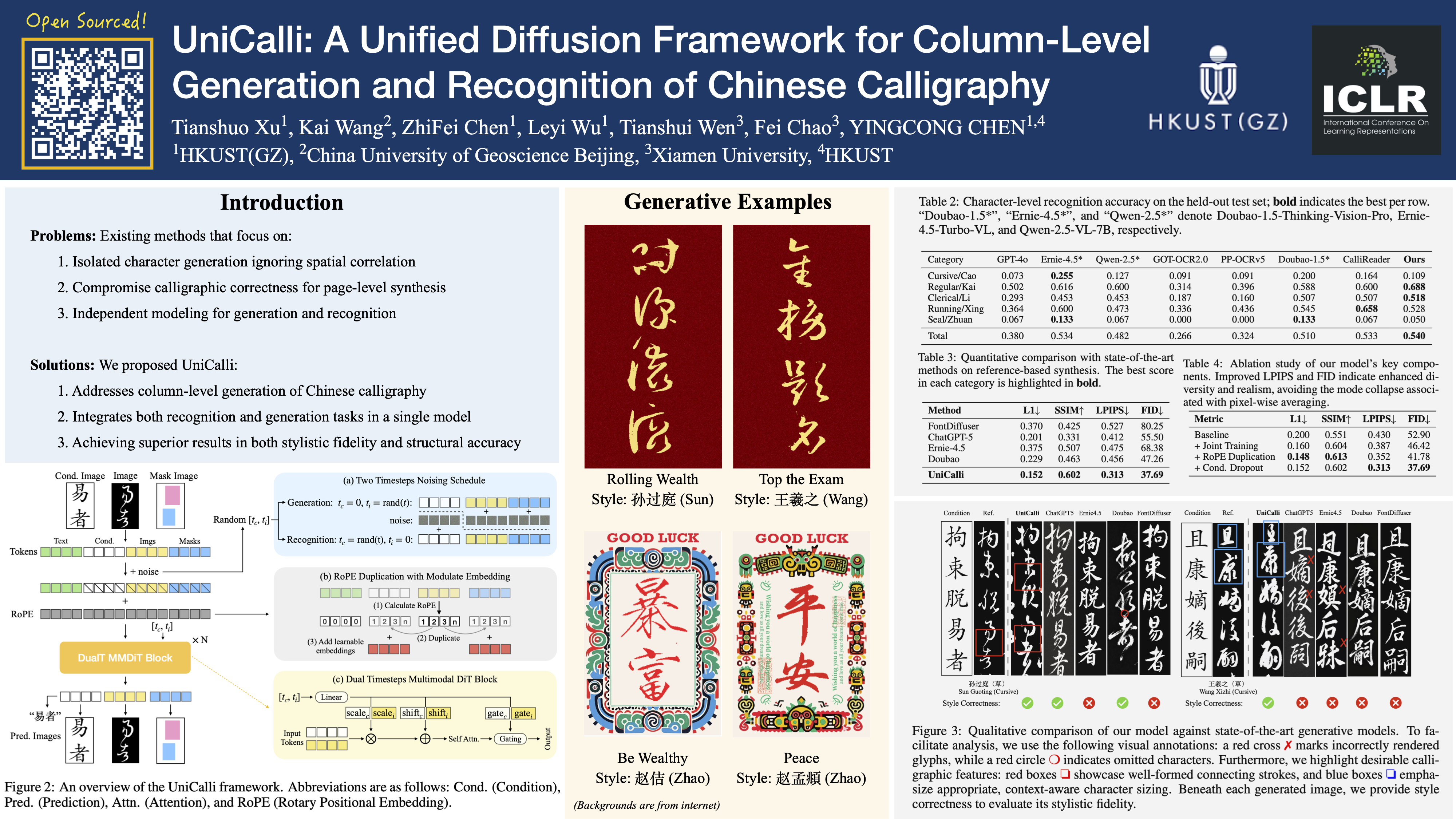 UniCalli: A Unified Diffusion Framework for Column-Level Generation and Recognition of Chinese Calligraphy