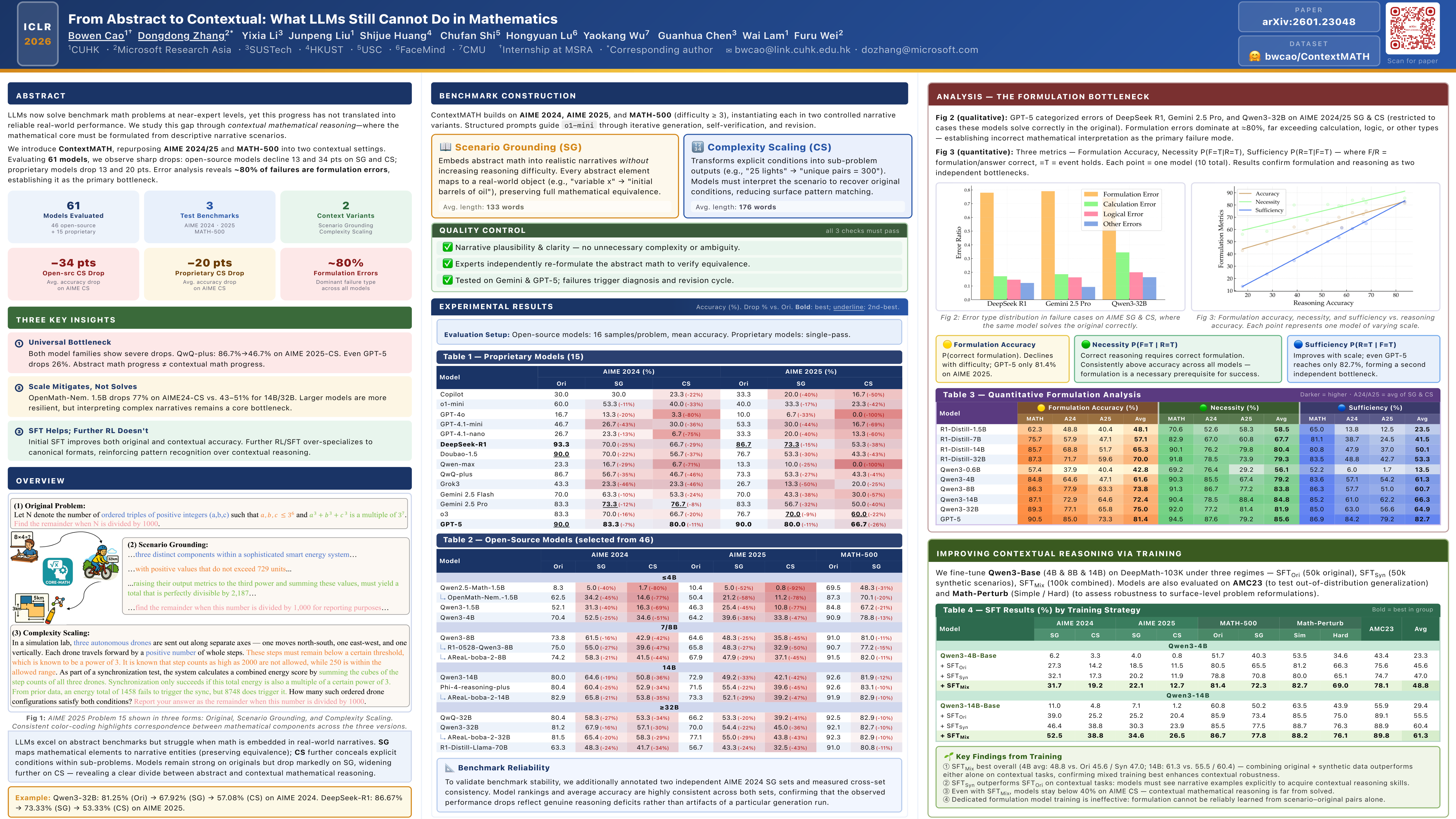 From Abstract to Contextual: What LLMs Still Cannot Do in Mathematics