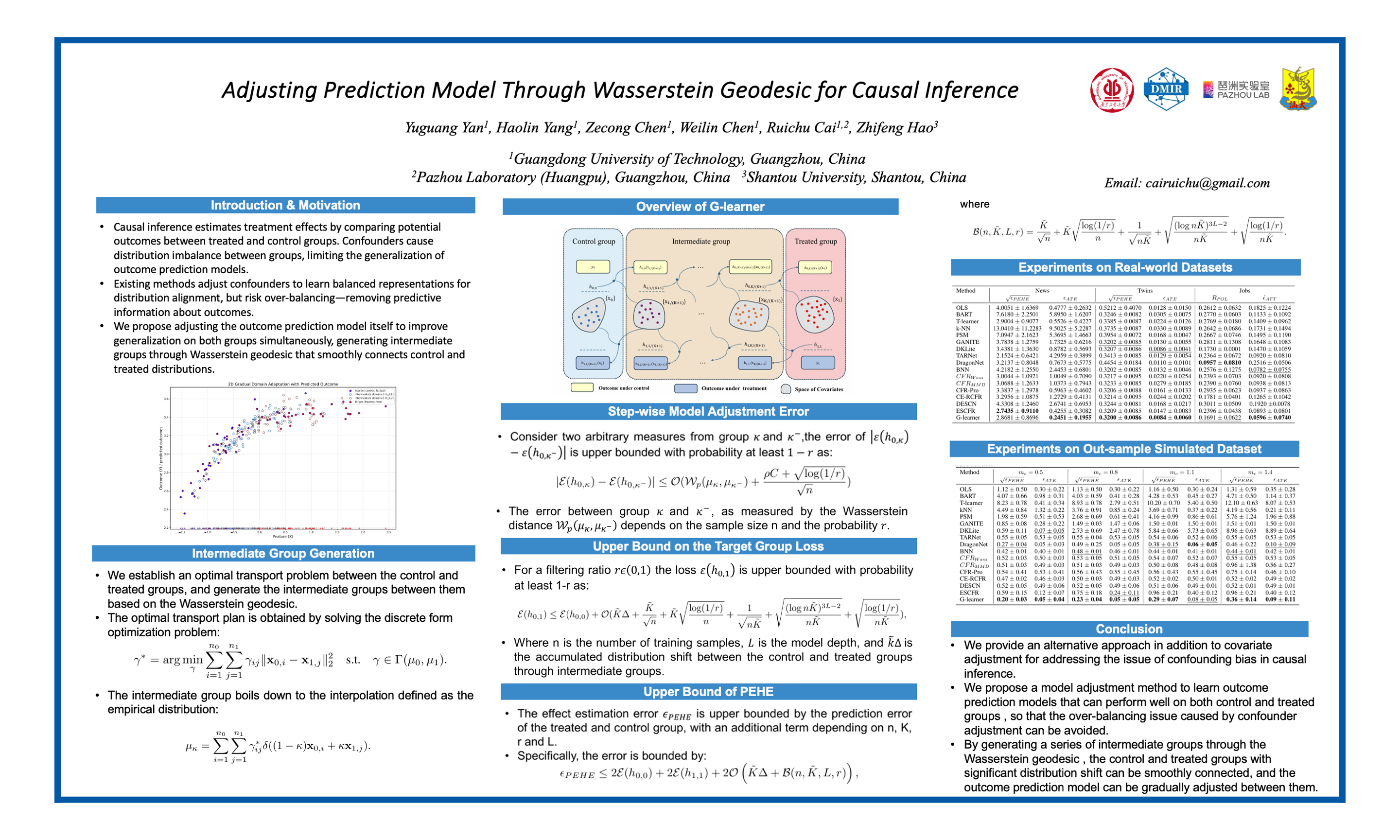 Adjusting Prediction Model Through Wasserstein Geodesic for Causal Inference