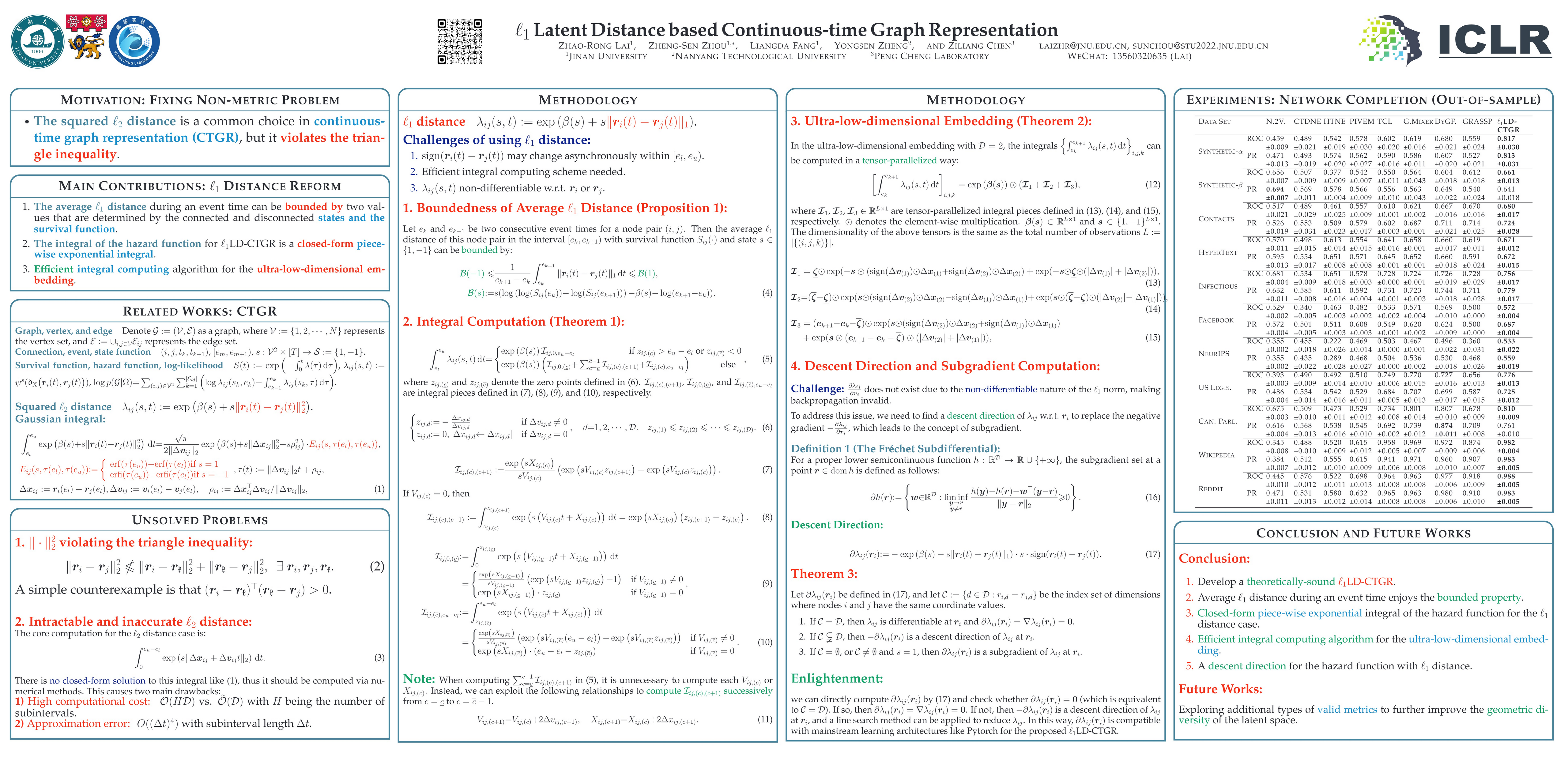 $\ell_1$ Latent Distance based Continuous-time Graph Representation