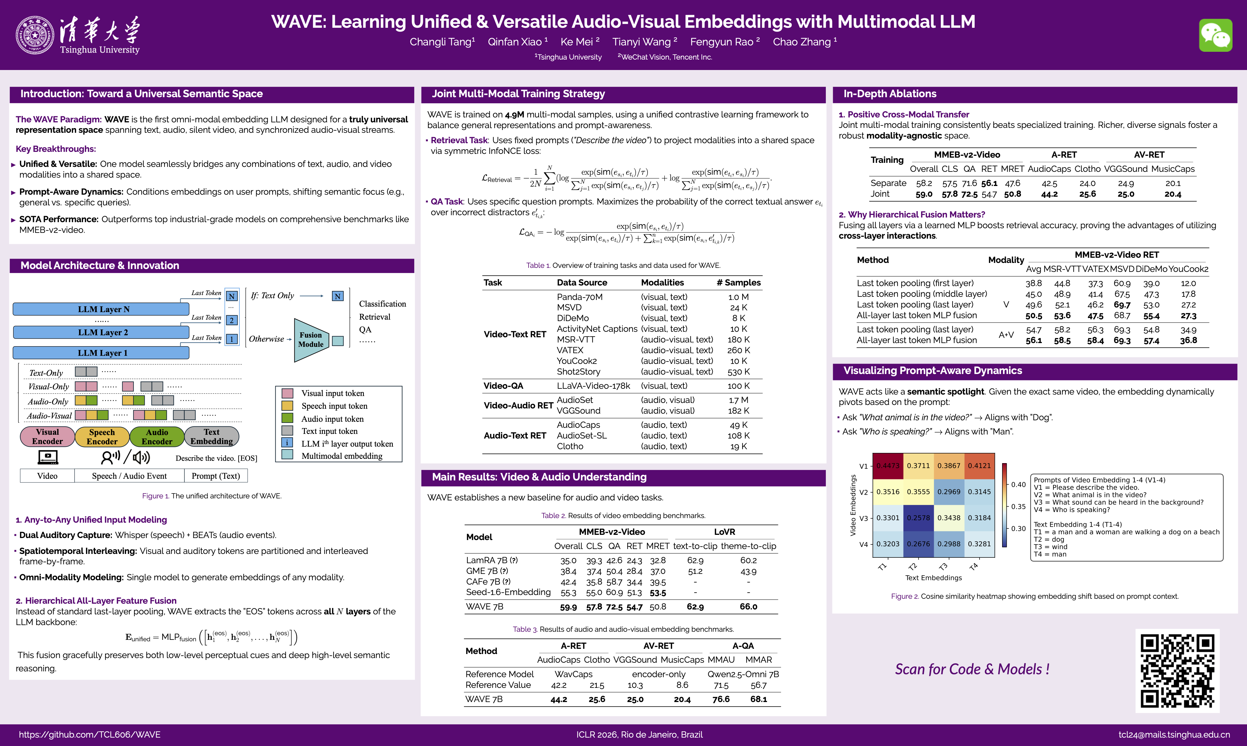 WAVE: Learning Unified & Versatile Audio-Visual Embeddings with Multimodal LLM