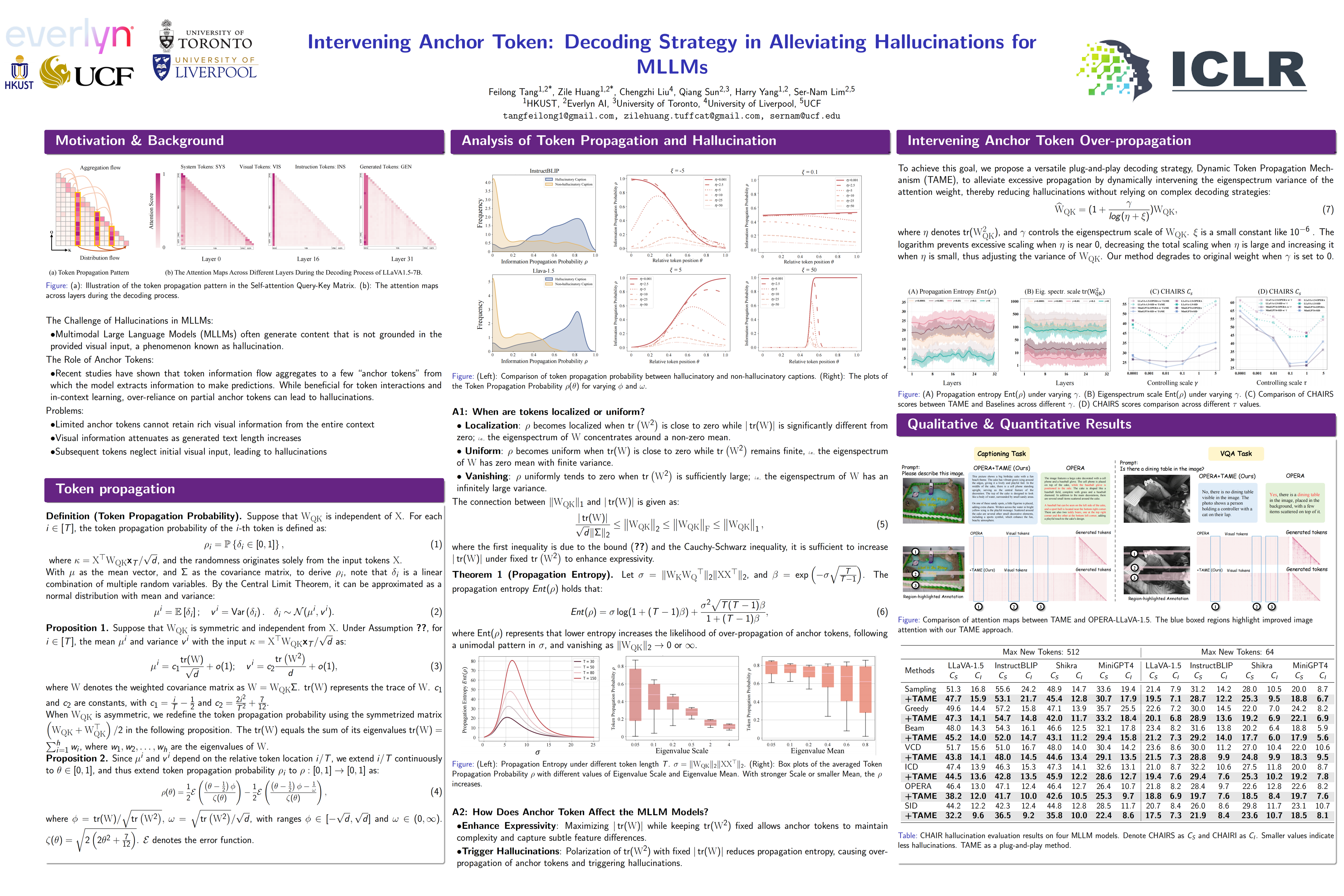 Multimodal large language models (MLLMs) offer a powerful mechanism for interpreting visual information. However, they often suffer from hallucinations, which impede the real-world usage of these models. Existing methods attempt to alleviate this issue by designing special decoding strategies that penalize the summary tokens. However, these methods lack analysis of the relationship between hallucination and summarization mechanism of LLMs. Interestingly, we find that penalizing summary tokens is not necessary: merely intervening the query-key parameters variance, without costing extra inference time, still alleviates hallucinations. Specifically, we explore the causes of hallucinations by analyzing localized self-attention patterns called ``anchor" tokens and define the attention localization degree of the model as token propagation probabilities. Our analysis reveals that over-propagation of anchor tokens occurs when the distribution of eigenvalues of the query and key matrices has a non-zero mean and a polarized variance, leading to excessive dependence on anchor tokens while neglecting vision information and describes the image content with hallucination. Based on the observation, we propose a versatile plug-and-play decoding strategy, Dynamic Token Propagation Mechanism (TAME), to alleviate excessive propagation by dynamically intervening the eigenspectrum variance of the attention weight, thereby alleviating hallucinations without relying on complex decoding strategies. Extensive experiments reveal a correlation between the eigenspectrum and hallucinations across various MLLMs, and show that TAME reduces the percentage of hallucinated objects.