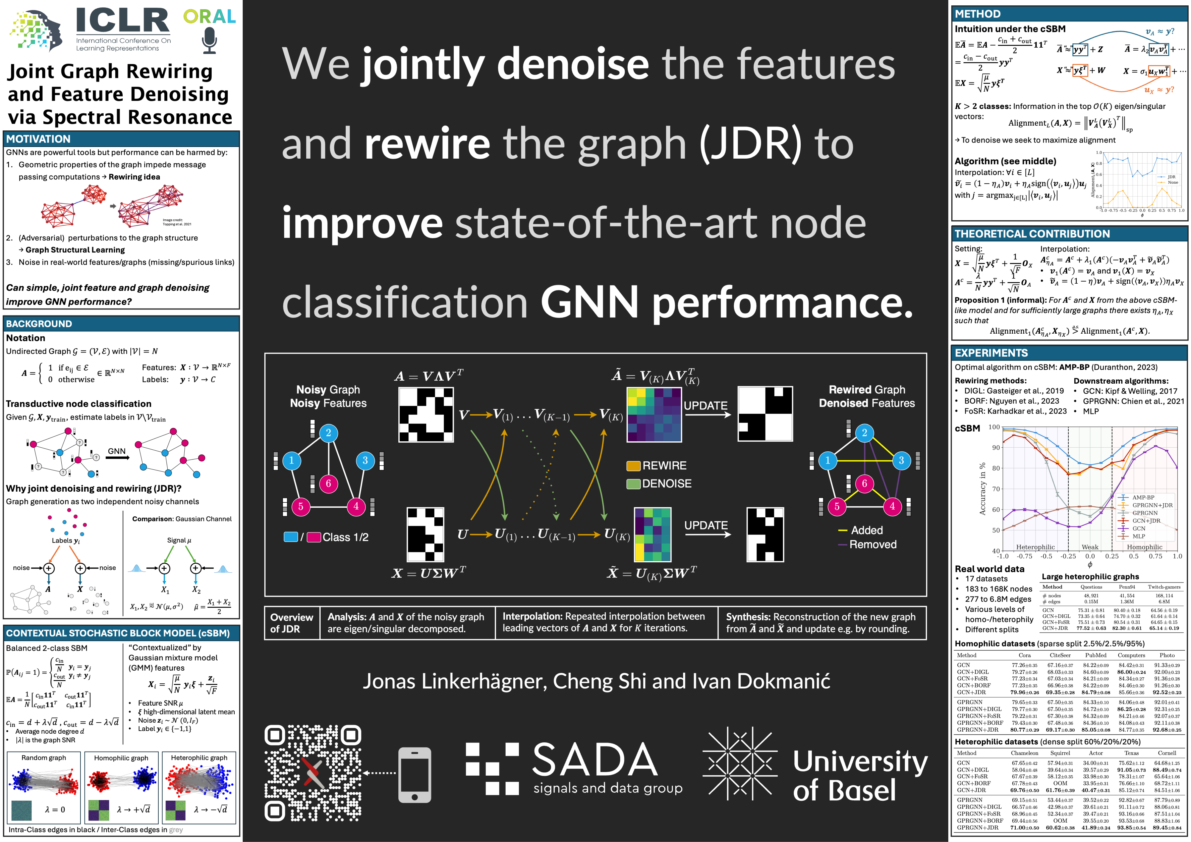 Joint Graph Rewiring and Feature Denoising via Spectral Resonance