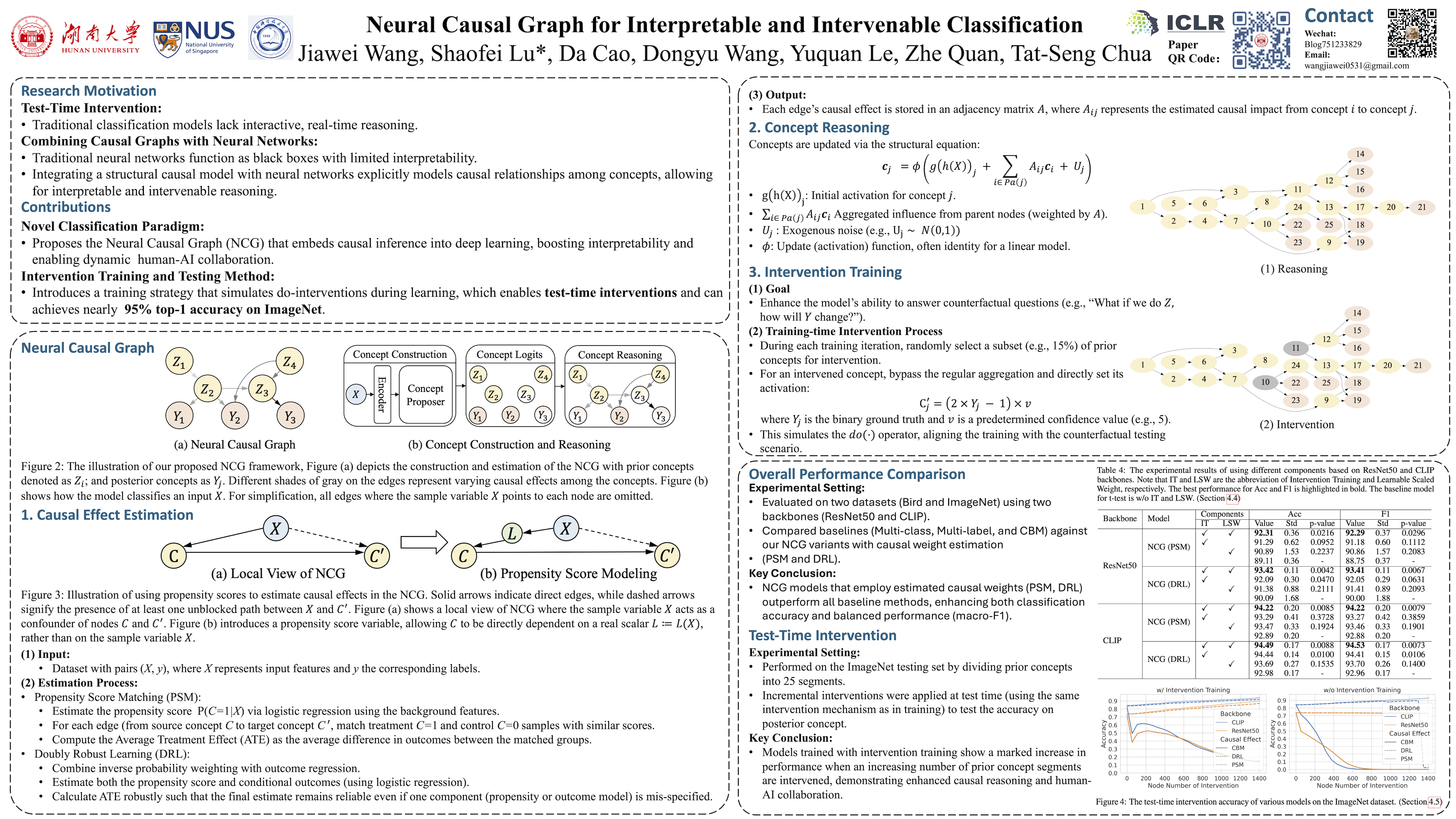 Advancements in neural networks have significantly enhanced the performance of classification models, achieving remarkable accuracy across diverse datasets. However, these models often lack transparency and do not support interactive reasoning with human users, which are essential attributes for applications that require trust and user engagement. To overcome these limitations, we introduce an innovative framework, Neural Causal Graph (NCG), that integrates causal inference with neural networks to enable interpretable and intervenable reasoning. We then propose an intervention training method to model the intervention probability of the prediction, serving as a contextual prompt to facilitate the fine-grained reasoning and human-AI interaction abilities of NCG. Our experiments show that the proposed framework significantly enhances the performance of traditional classification baselines. Furthermore, NCG achieves nearly 95\% top-1 accuracy on the ImageNet dataset by employing a test-time intervention method. This framework not only supports sophisticated post-hoc interpretation but also enables dynamic human-AI interactions, significantly improving the model's transparency and applicability in real-world scenarios.