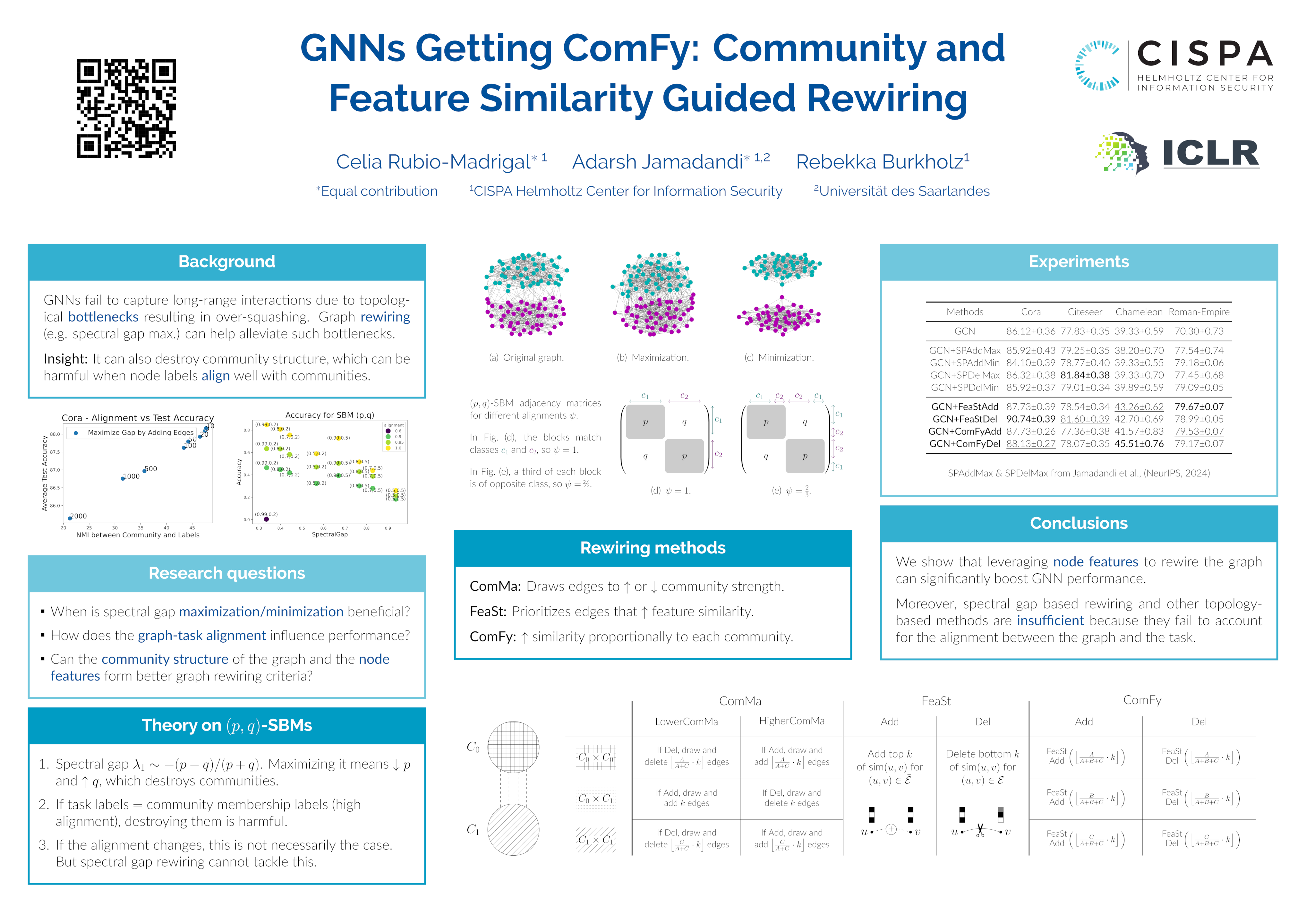 Maximizing the spectral gap through graph rewiring has been proposed to enhance the performance of message-passing graph neural networks (GNNs) by addressing over-squashing. However, as we show, minimizing the spectral gap can also improve generalization. To explain this, we analyze how rewiring can benefit GNNs within the context of stochastic block models. Since spectral gap optimization primarily influences community strength, it improves performance when the community structure aligns with node labels. Building on this insight, we propose three distinct rewiring strategies that explicitly target community structure, node labels, and their alignment: (a) community structure-based rewiring (ComMa), a more computationally efficient alternative to spectral gap optimization that achieves similar goals; (b) feature similarity-based rewiring (FeaSt), which focuses on maximizing global homophily; and (c) a hybrid approach (ComFy), which enhances local feature similarity while preserving community structure to optimize label-community alignment. Extensive experiments confirm the effectiveness of these strategies and support our theoretical insights.