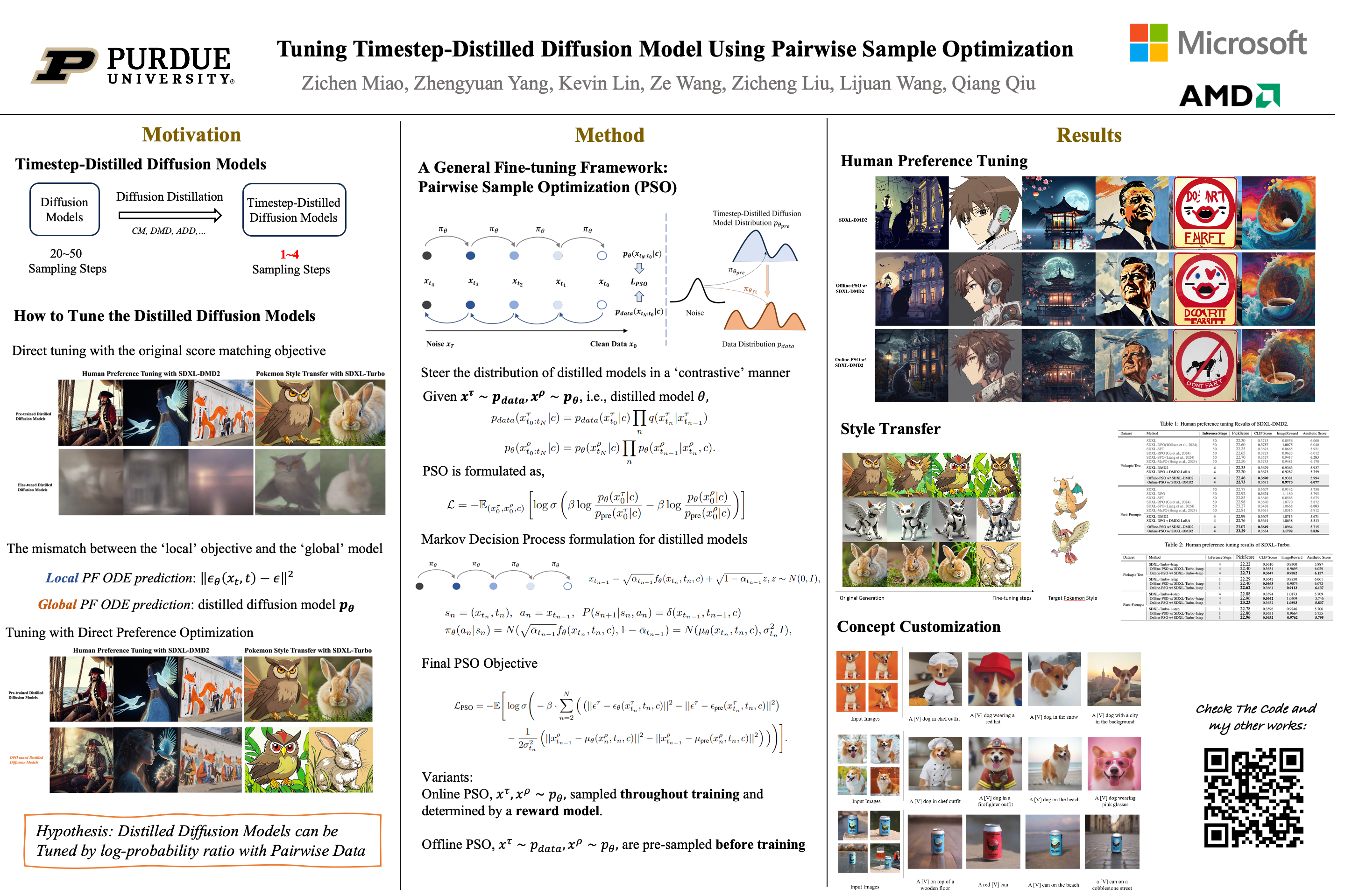 Recent advancements in timestep-distilled diffusion models have enabled high-quality image generation that rivals non-distilled multi-step models, but with significantly fewer inference steps. While such models are attractive for applications due to the low inference cost and latency, fine-tuning them with a naive diffusion objective would result in degraded and blurry outputs. An intuitive alternative is to repeat the diffusion distillation process with a fine-tuned teacher model, which produces good results but is cumbersome and computationally intensive: the distillation training usually requires magnitude higher of training compute compared to fine-tuning for specific image styles. In this paper, we present an algorithm named pairwise sample optimization (PSO), which enables the direct fine-tuning of an arbitrary timestep-distilled diffusion model. PSO introduces additional reference images sampled from the current time-step distilled model, and increases the relative likelihood margin between the training images and reference images. This enables the model to retain its few-step generation ability, while allowing for fine-tuning of its output distribution. We also demonstrate that PSO is a generalized formulation which be flexible extended to both offline-sampled and online-sampled pairwise data, covering various popular objectives for diffusion model preference optimization. We evaluate PSO in both preference optimization and other fine-tuning tasks, including style transfer and concept customization. We show that PSO can directly adapt distilled models to human-preferred generation with both offline and online-generated pairwise preference image data. PSO also demonstrates effectiveness in style transfer and concept customization by directly tuning timestep-distilled diffusion models.