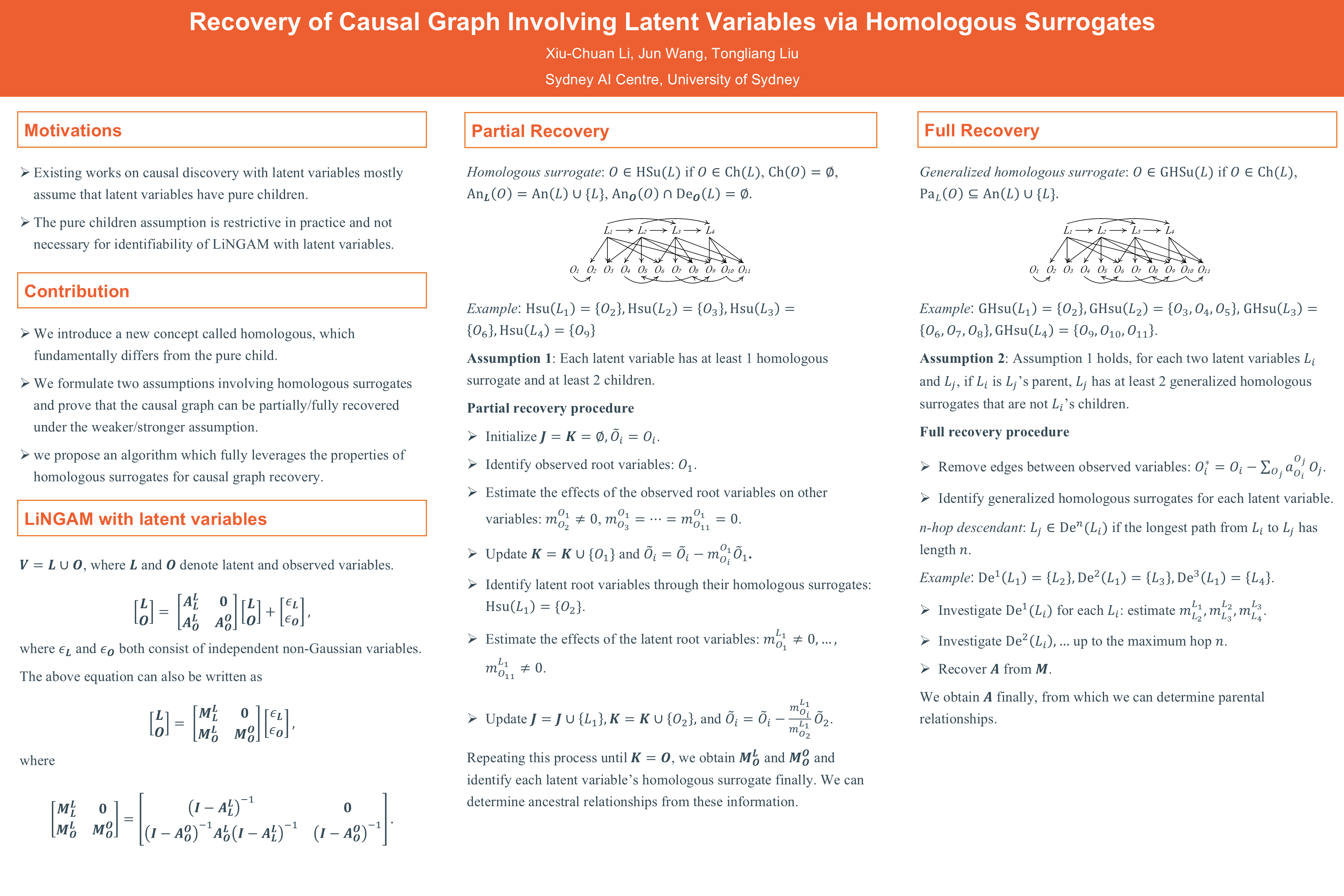 Recovery of Causal Graph Involving Latent Variables via Homologous Surrogates