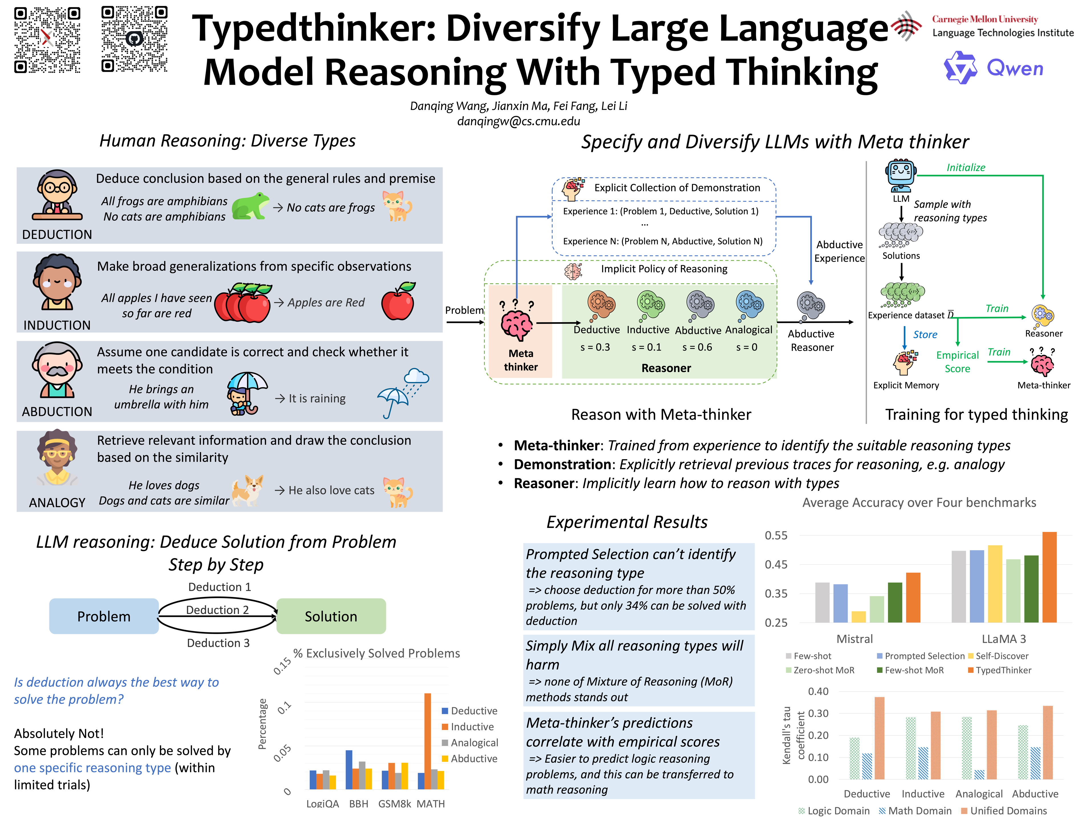 Large Language Models (LLMs) have demonstrated strong reasoning capabilities in solving complex problems. However, current approaches primarily enhance reasoning through the elaboration of thoughts while neglecting the diversity of reasoning types. LLMs typically employ deductive reasoning, proceeding step-by-step from given conditions, which limits their exploration during problem-solving. Our analysis reveals that certain problems are exclusively solvable through specific reasoning strategies like inductive, abductive, or analogical reasoning. However, incorporating diverse reasoning approaches presents two key challenges: identifying the appropriate reasoning type for each problem and exploiting this approach during problem-solving. Therefore, we propose the TypedThinker that predicts suitable reasoning types based on the problem and their previous effectiveness and provides relevant demonstrations to guide LLMs in applying these strategies. Experimental results show significant improvements across multiple benchmarks, with performance gains of 3.4\% for Mistral 7B, 6.5\% for LLaMA3 8B, and 7\% for Qwen 2 7B on logical and mathematical reasoning tasks. TypedThinker enhances LLM reasoning without requiring knowledge distillation from larger models. It can be integrated into more advanced systems like GPT-4o or specialized models like MetaMath to diversify their reasoning approaches and improve their problem-solving capabilities.