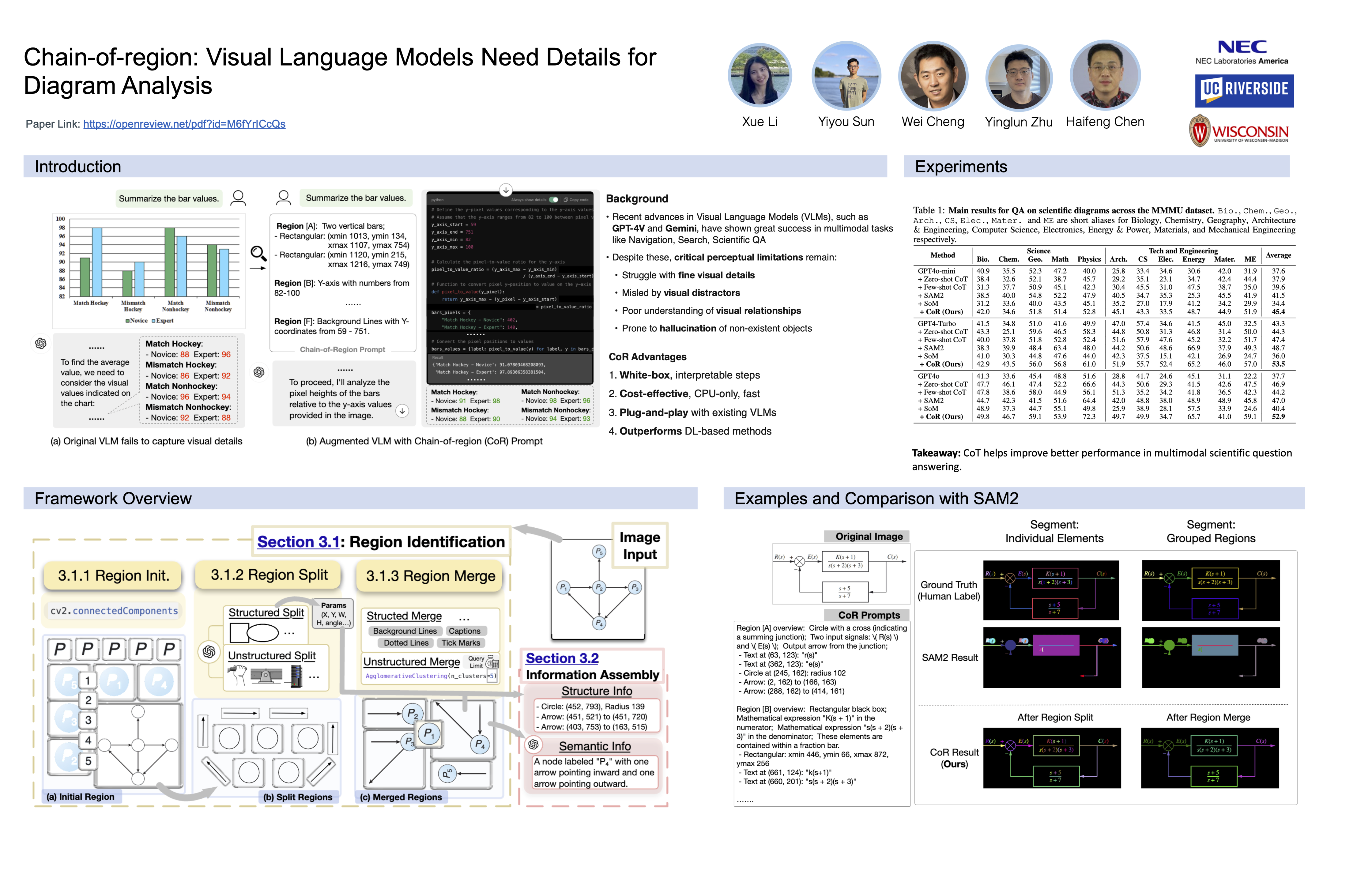 Visual Language Models (VLMs) like GPT-4V have broadened the scope of LLM applications, yet they face significant challenges in accurately processing visual details, particularly in scientific diagrams. This paper explores the necessity of meticulous visual detail collection and region decomposition for enhancing the performance of VLMs in scientific diagram analysis. We propose a novel approach that combines traditional computer vision techniques with VLMs to systematically decompose diagrams into discernible visual elements and aggregate essential metadata. Our method employs techniques in OpenCV library to identify and label regions, followed by a refinement process using shape detection and region merging algorithms, which are particularly suited to the structured nature of scientific diagrams. This strategy not only improves the granularity and accuracy of visual information processing but also extends the capabilities of VLMs beyond their current limitations. We validate our approach through a series of experiments that demonstrate enhanced performance in diagram analysis tasks, setting a new standard for integrating visual and language processing in a multimodal context.