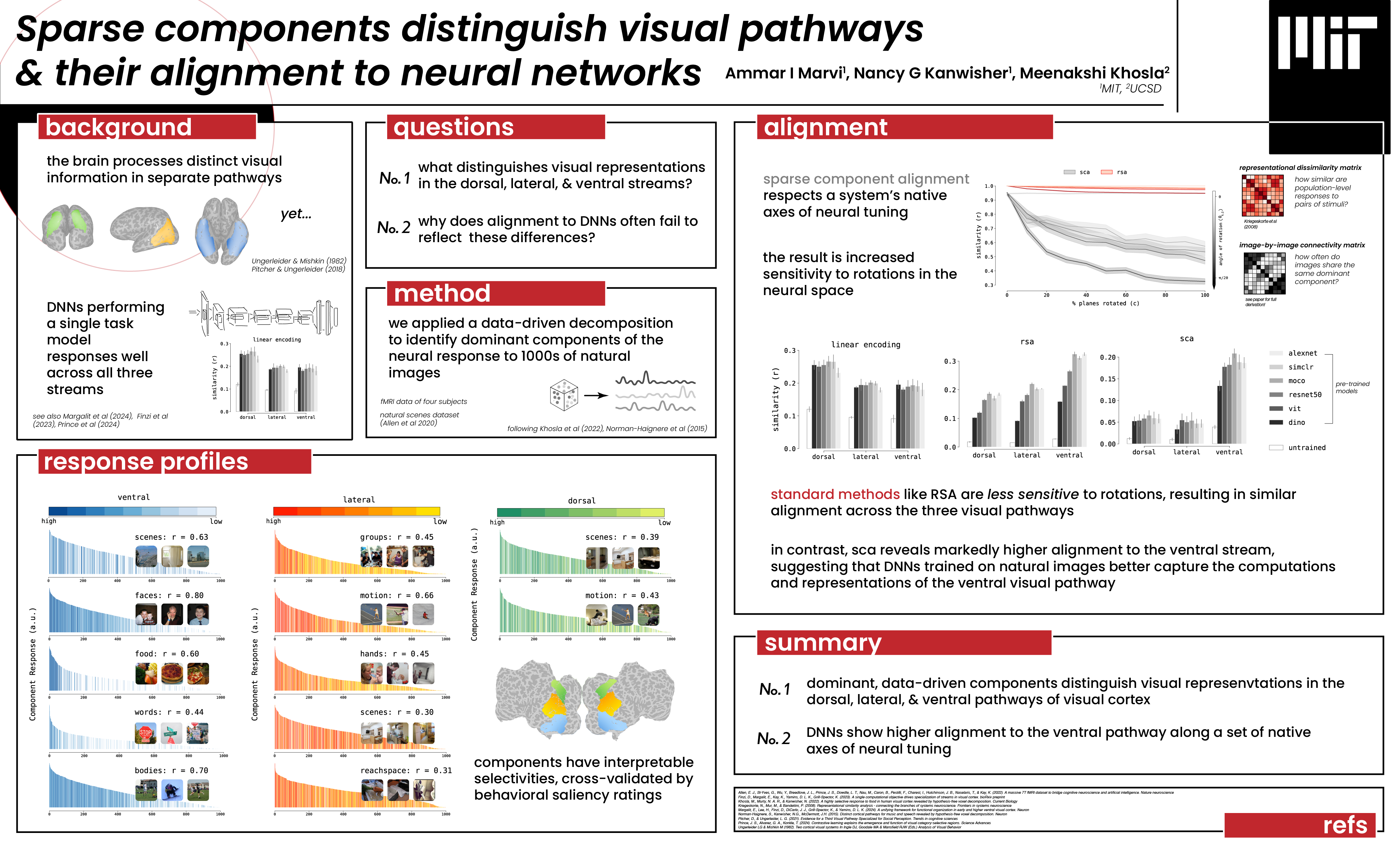 Sparse components distinguish visual pathways & their alignment to neural networks