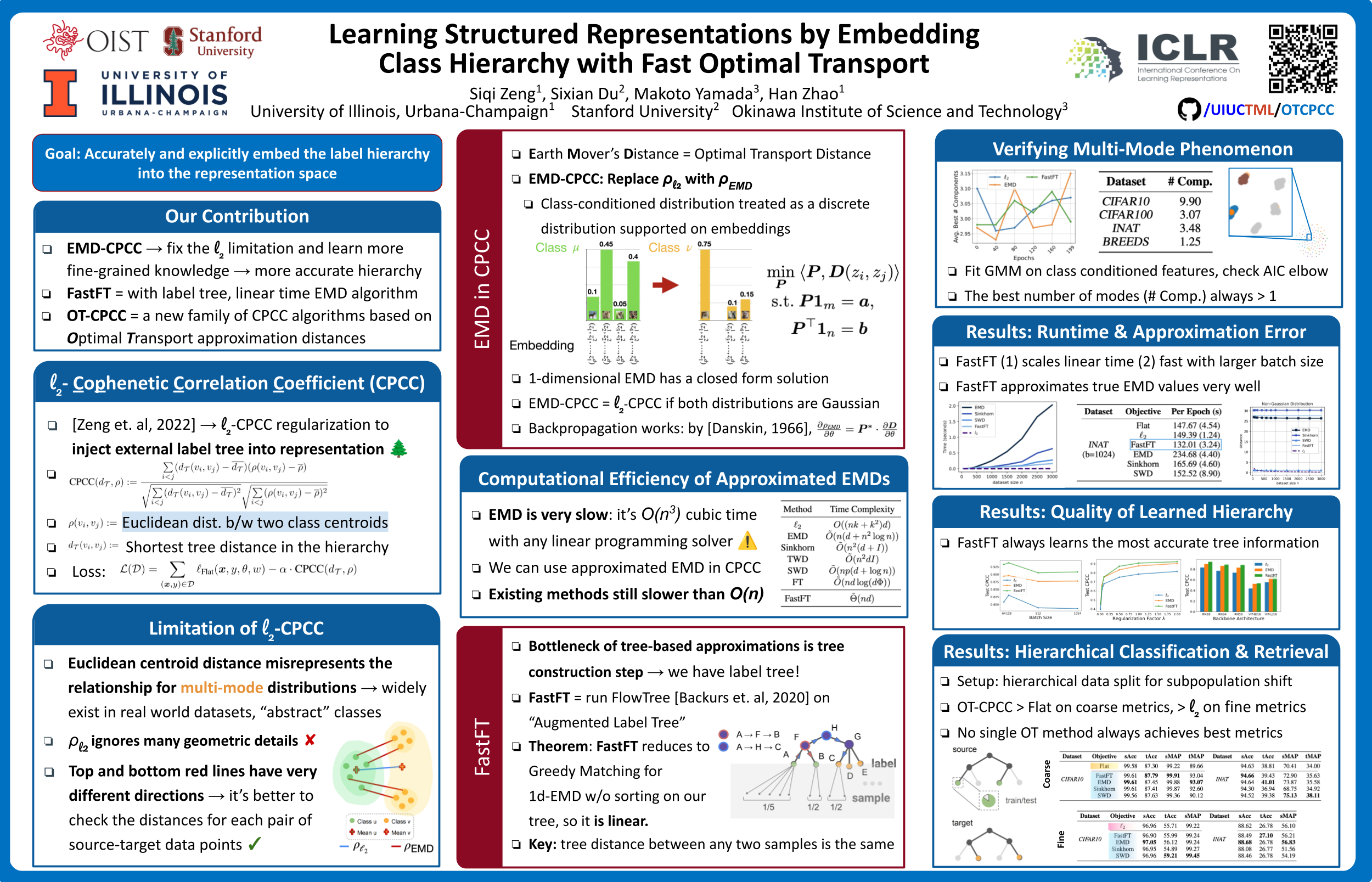 To embed structured knowledge within labels into feature representations, prior work (Zeng et al., 2022) proposed to use the Cophenetic Correlation Coefficient (CPCC) as a regularizer during supervised learning. This regularizer calculates pairwise Euclidean distances of class means and aligns them with the corresponding shortest path distances derived from the label hierarchy tree. However, class means may not be good representatives of the class conditional distributions, especially when they are multi-mode in nature. To address this limitation, under the CPCC framework, we propose to use the Earth Mover's Distance (EMD) to measure the pairwise distances among classes in the feature space. We show that our exact EMD method generalizes previous work, and recovers the existing algorithm when class-conditional distributions are Gaussian in the feature space. To further improve the computational efficiency of our method, we introduce the Optimal Transport-CPCC family by exploring four EMD approximation variants. Our most efficient OT-CPCC variant runs in linear time in the size of the dataset, while maintaining competitive performance across datasets and tasks. The code is available at https://github.com/uiuctml/OTCPCC.