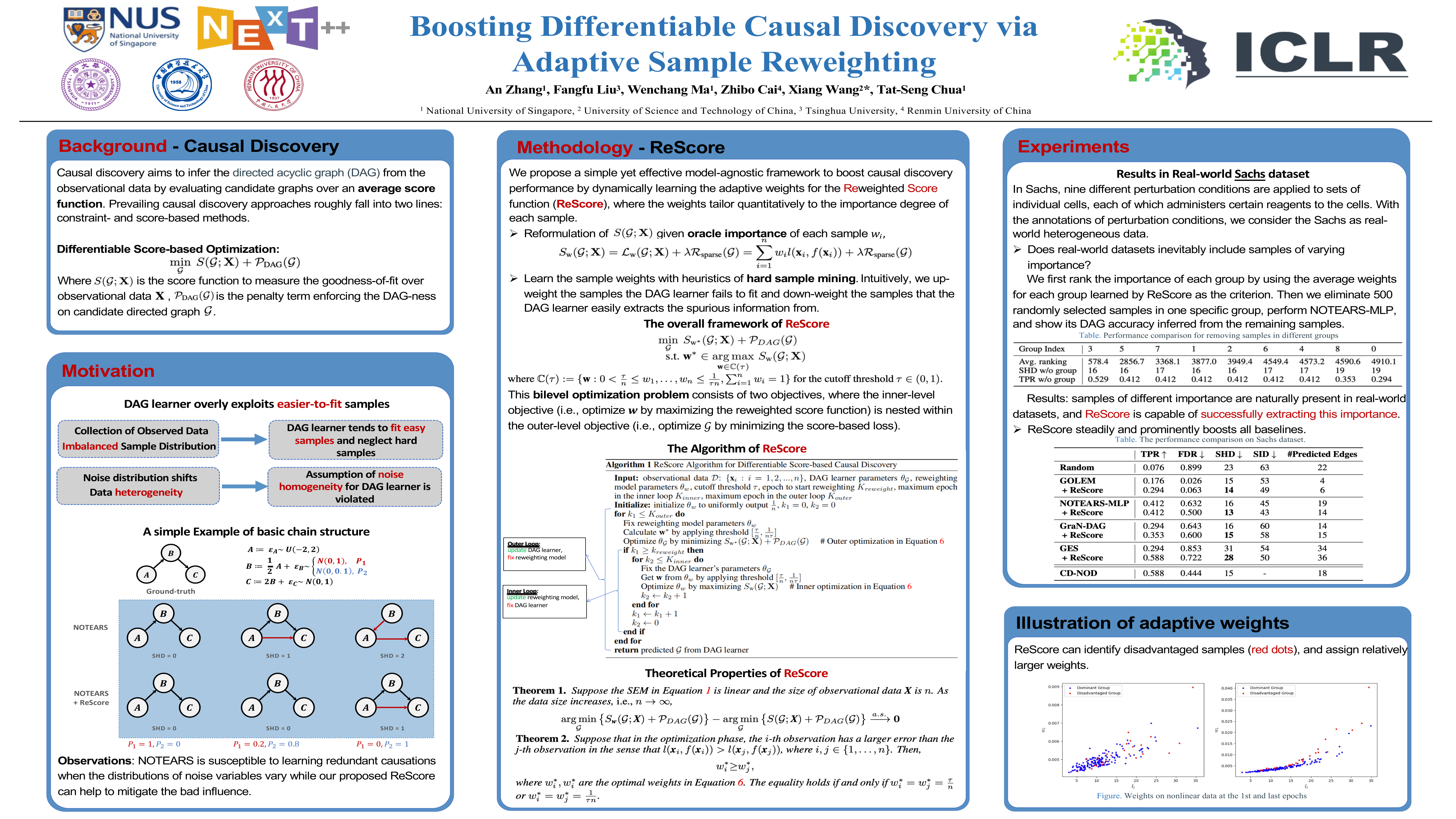 Keywords: [ Adaptive Sample Reweighting ] [ Score-based Causal Discovery ] [ Causal Structure Learning ] [ General Machine Learning ]
