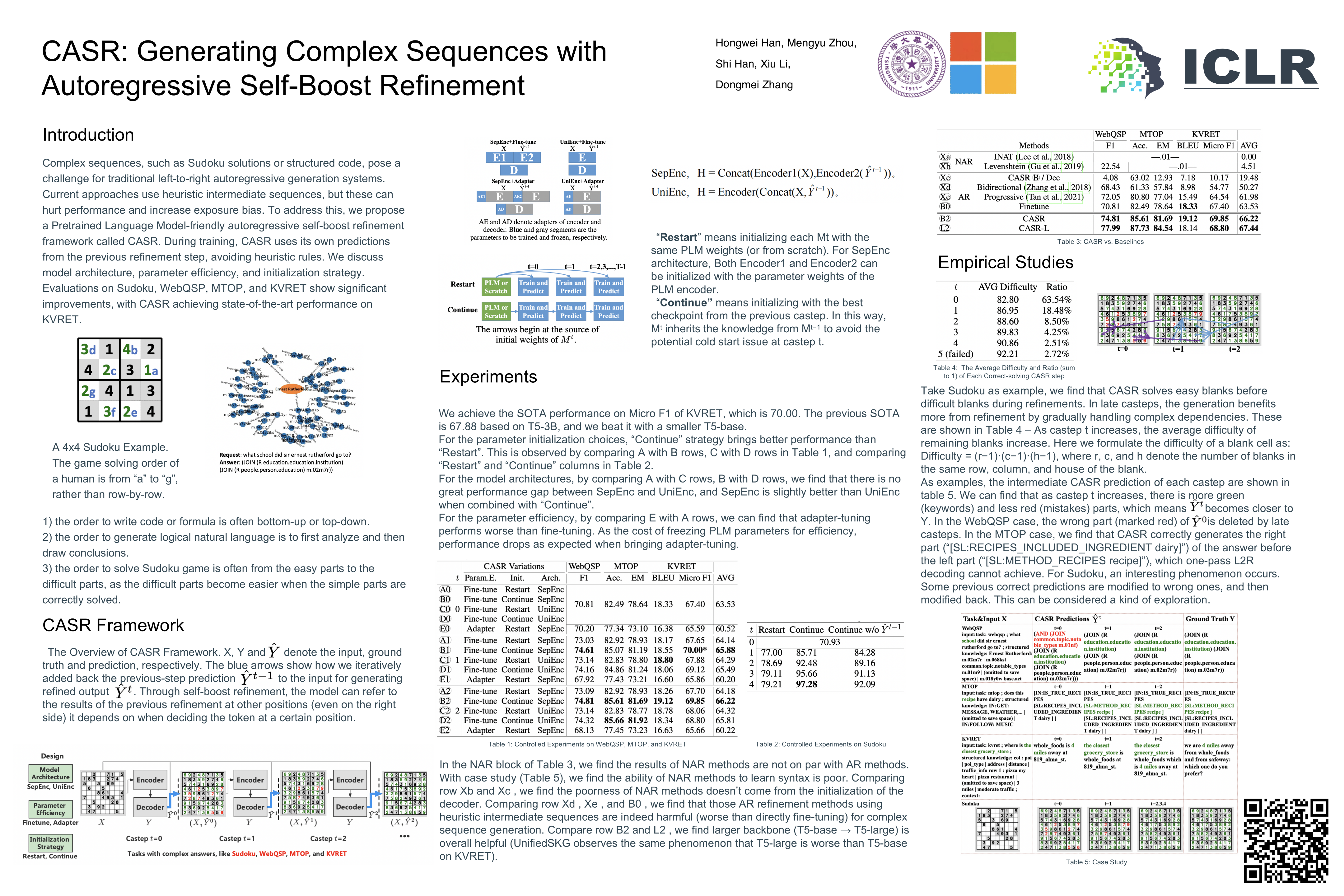 There are sequence generation tasks where the best order to generate the target sequence is not left-to-right. For example, an answer to the Sudoku game, a structured code like s-expression, and even a logical natural language answer where the analysis may be generated after the decision. We define the target sequences of those tasks as complex sequences. Obviously, a complex sequence should be constructed with multiple logical steps, and has dependencies among each part of itself (e.g. decisions depend on analyses). It's a great challenge for the classic left-to-right autoregressive generation system to generate complex sequences. Current approaches improve one-pass left-to-right generation on NLG tasks by generating different heuristic intermediate sequences in multiple stages. However, for complex sequences, the heuristic rules to break down them may hurt performance, and increase additional exposure bias. To tackle these challenges, we propose a PLM-friendly autoregressive self-boost refinement framework, CASR. When training, CASR inputs the predictions generated by the model itself at the previous refinement step (instead of those produced by heuristic rules). To find an optimal design, we also discuss model architecture, parameter efficiency and initialization strategy. By evaluating CASR on Sudoku, WebQSP, MTOP and KVRET through controlled experiments and empirical studies, we find that CASR produces high-quality outputs. CASR also improves Accuracy on Sudoku (70.93% --> 97.28%) and achieves state-of-the-art performance on KVRET with Micro F1 score (67.88% --> 70.00%).