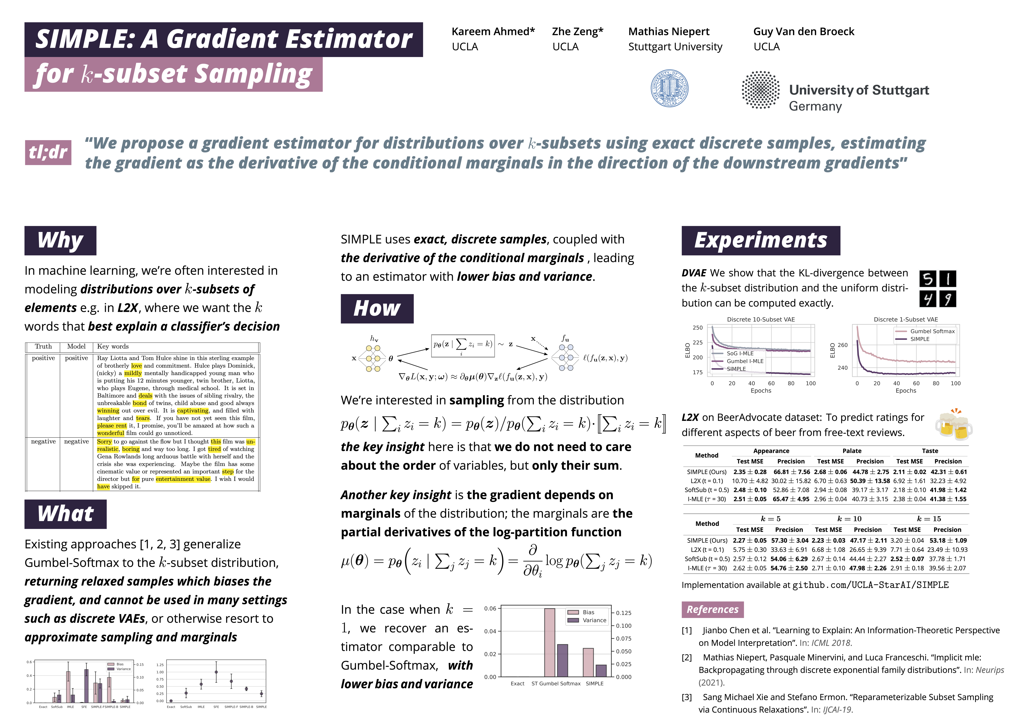 SIMPLE: A Gradient Estimator for k-Subset Sampling