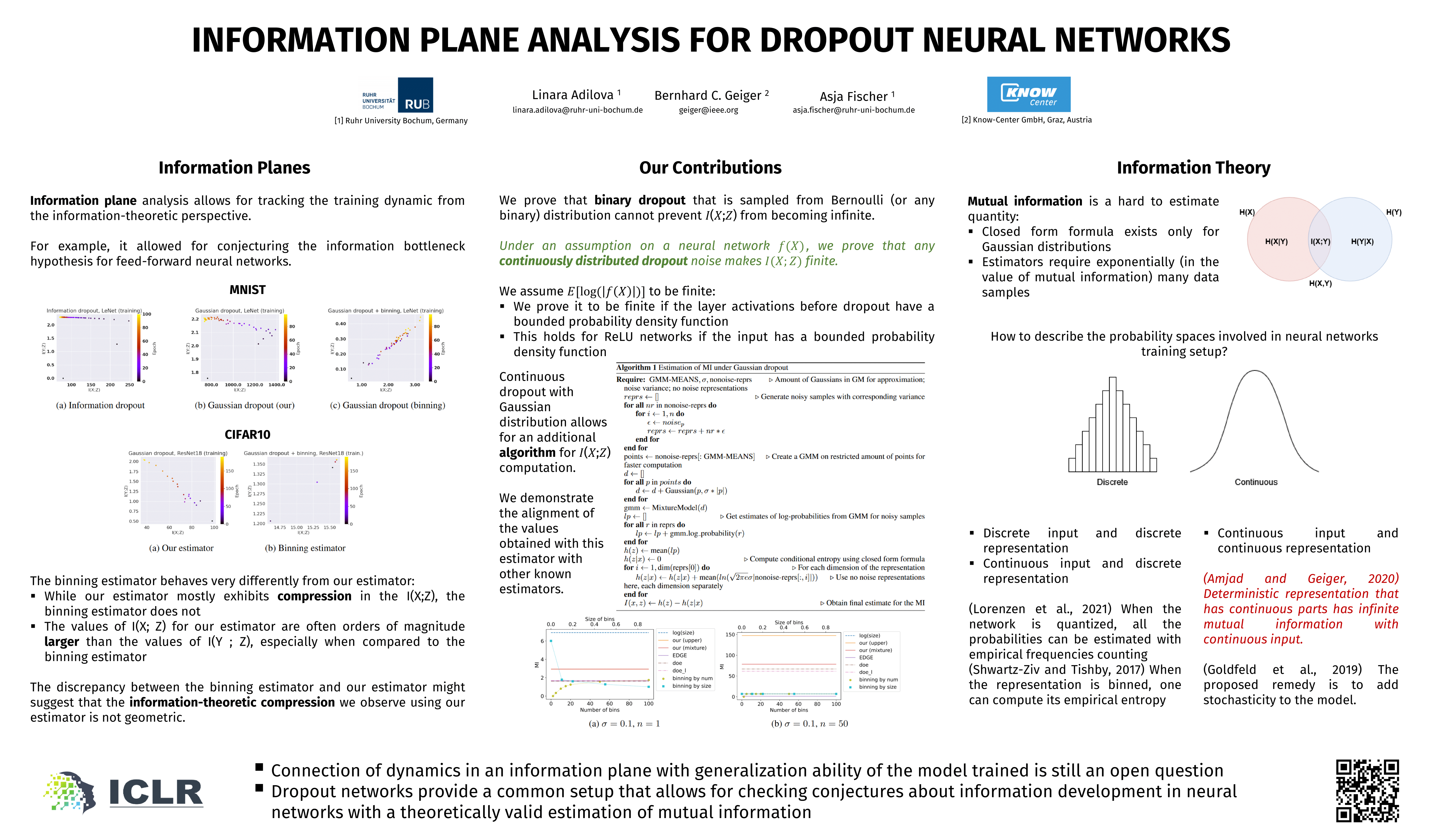 Keywords: [ mutual information ] [ continuous distributions ] [ information plane ] [ deep learning ] [ dropout ] [ Deep Learning and representational learning ]