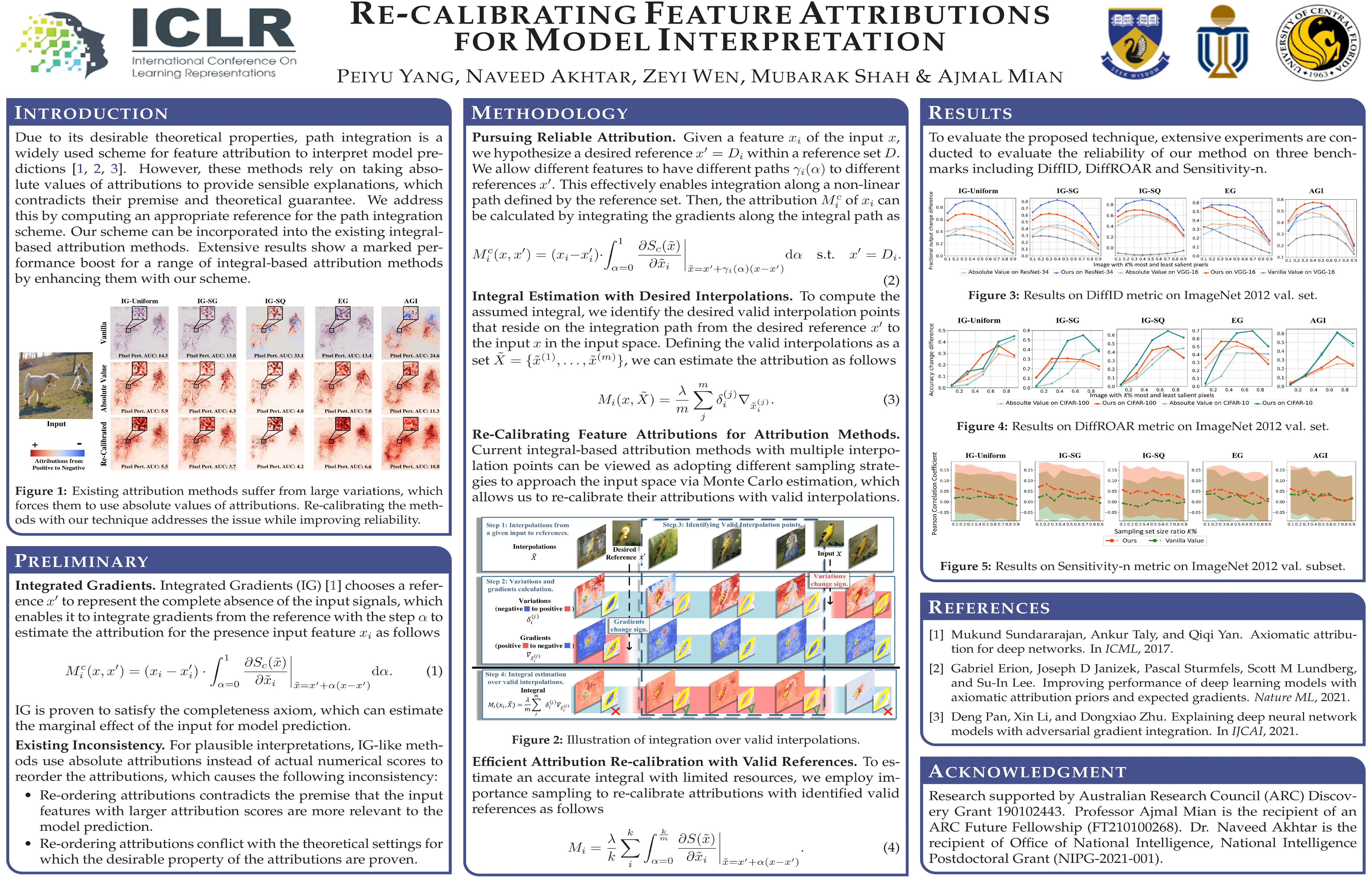 The ability to interpret machine learning models is critical for high-stakes applications. Due to its desirable theoretical properties, path integration is a widely used scheme for feature attribution to interpret model predictions. However, the methods implementing this scheme currently rely on absolute attribution scores to eventually provide sensible interpretations. This not only contradicts the premise that the features with larger attribution scores are more relevant to the model prediction, but also conflicts with the theoretical settings for which the desirable properties of the attributions are proven. We address this by devising a method to first compute an appropriate reference for the path integration scheme. This reference further helps in identifying valid interpolation points on a desired integration path. The reference is computed in a gradient ascending direction on the model's loss surface, while the interpolations are performed by analyzing the model gradients and variations between the reference and the input. The eventual integration is effectively performed along a non-linear path. Our scheme can be incorporated into the existing integral-based attribution methods. We also devise an effective sampling and integration procedure that enables employing our scheme with multi-reference path integration efficiently. We achieve a marked performance boost for a range of integral-based attribution methods on both local and global evaluation metrics by enhancing them with our scheme. Our extensive results also show improved sensitivity, sanity preservation and model robustness with the proposed re-calibration of the attribution techniques with our method.