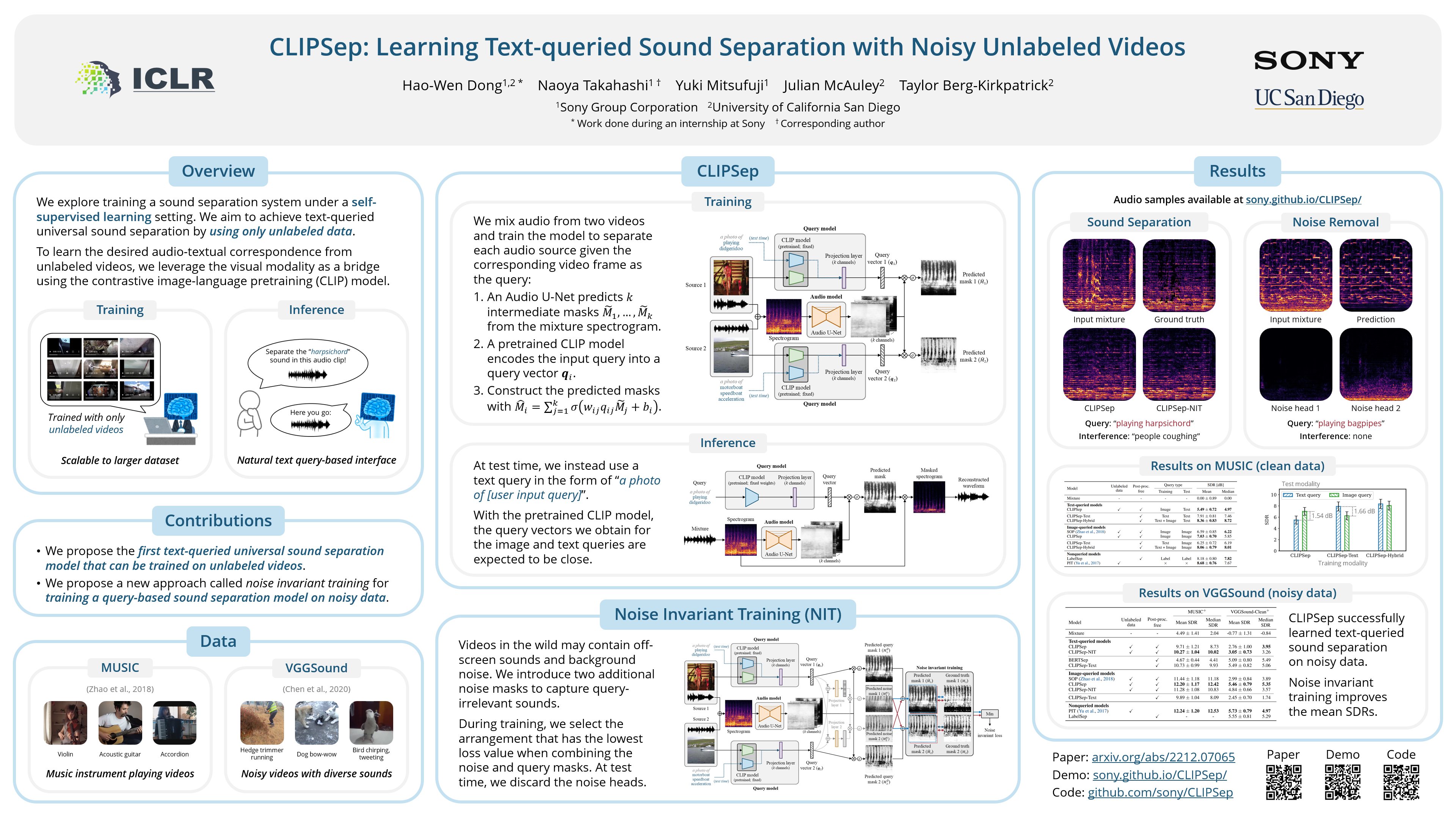Keywords: [ universal sound separation ] [ self-supervised learning ] [ Multi-Modal Learning ] [ contrastive language-image pre-training ] [ source separation ] [ Applications ]
