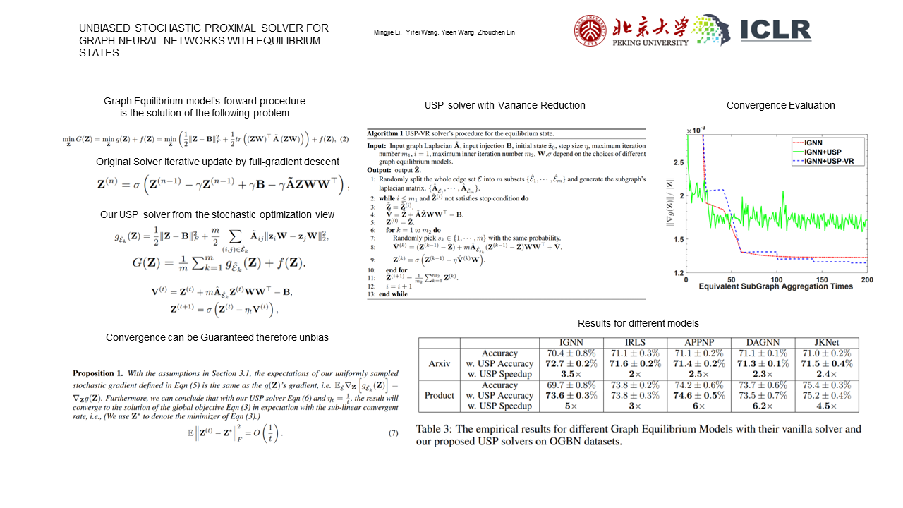 Graph Neural Networks (GNNs) are widely used deep learning models that can extract meaningful representations from graph datasets and achieve great success in many machine learning tasks. Among them, graph neural networks with iterative iterations like unfolded GNNs and implicit GNNs can effectively capture long-range dependencies in graphs and demonstrate superior performance on large graphs since they can mathematically ensure its convergence to some nontrivial solution after lots of aggregations. However, the aggregation time for such models costs a lot as they need to aggregate the full graph in each update. Such weakness limits the scalability of the implicit graph models. To tackle such limitations, we propose two unbiased stochastic proximal solvers inspired by the stochastic proximal gradient descent method and its variance reduction variant called USP and USP-VR solvers. From the point of stochastic optimization, we theoretically prove that our solvers are unbiased, which can converge to the same solution as the original solvers for unfolded GNNs and implicit GNNs. Furthermore, the computation complexities for unfolded GNNs and implicit GNNs with our proposed solvers are significantly less than their vanilla versions. Experiments on various large graph datasets show that our proposed solvers are more efficient and can achieve state-of-the-art performance.