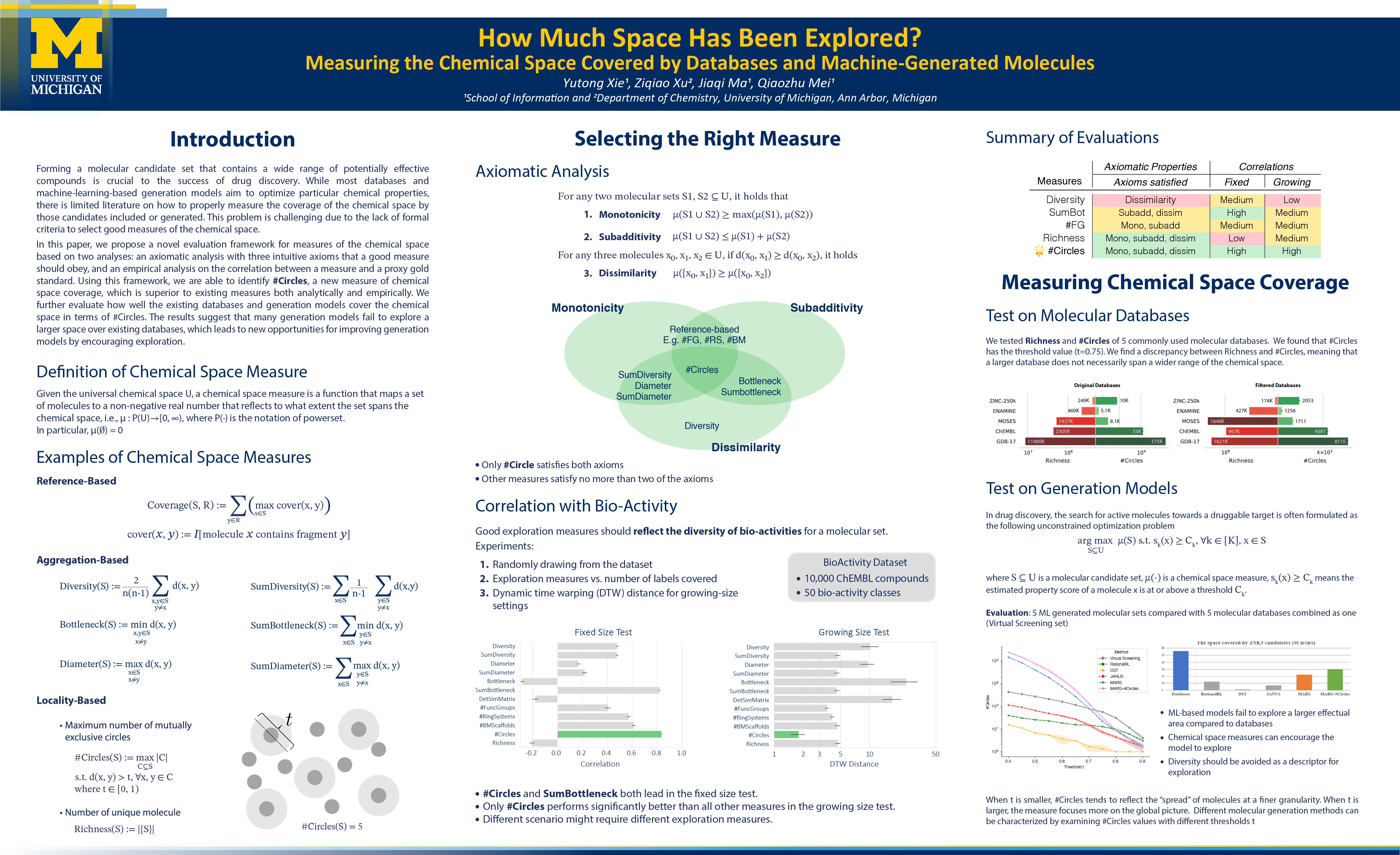 Keywords: [ drug discovery ] [ chemical space measures ] [ molecular generation ] [ coverea measures ] [ Machine Learning for Sciences ]