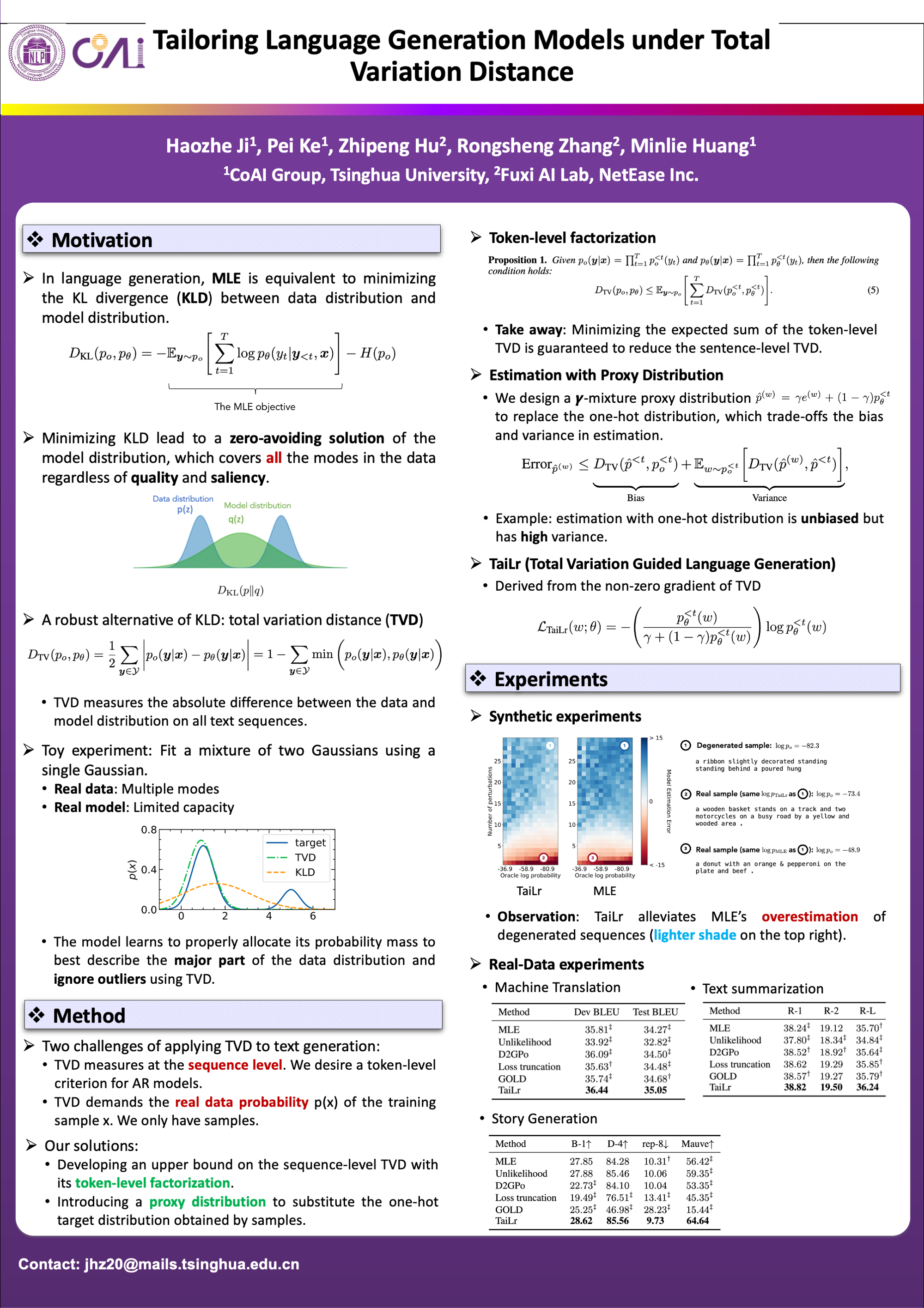 Keywords: [ maximum likelihood estimation ] [ text degeneration ] [ language generation ] [ total variation distance ] [ Applications ]