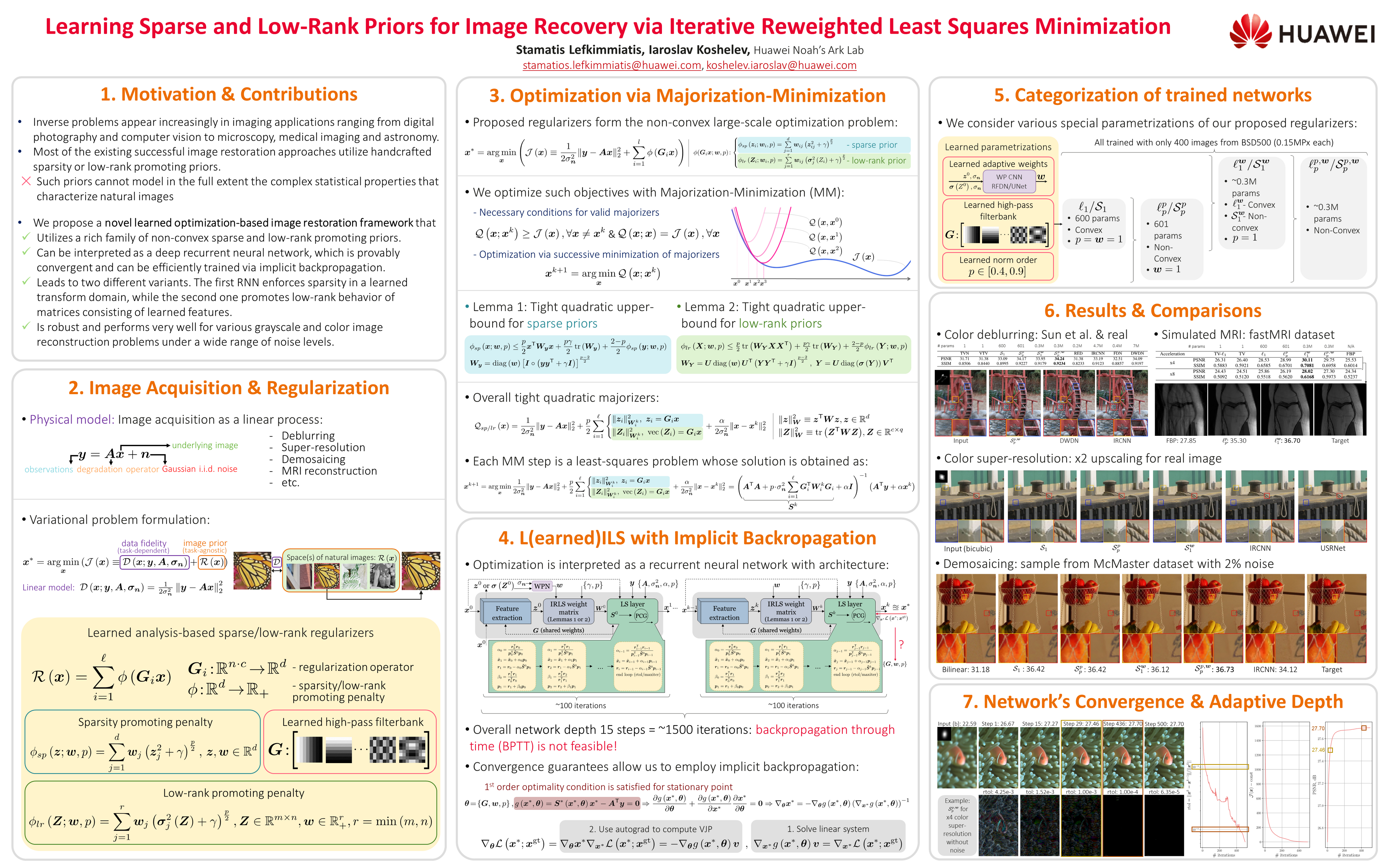 Keywords: [ IRLS ] [ recurrent networks ] [ Low-rank ] [ optimization ] [ inverse problems ] [ sparsity ] [ Optimization ]