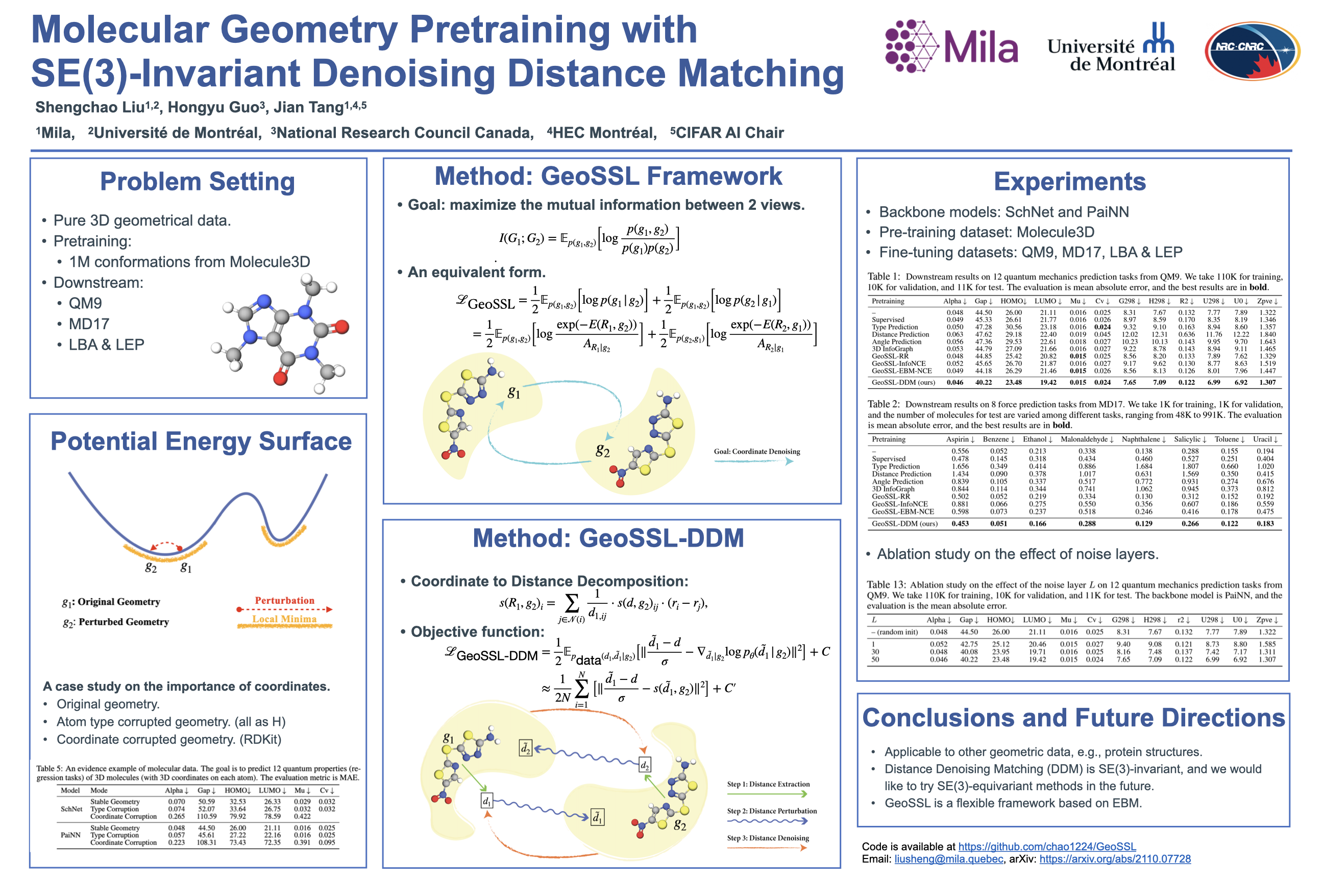 Keywords: [ geometry ] [ denoising score matching ] [ molecule ] [ representation ] [ pretraining ] [ Unsupervised and Self-supervised learning ]