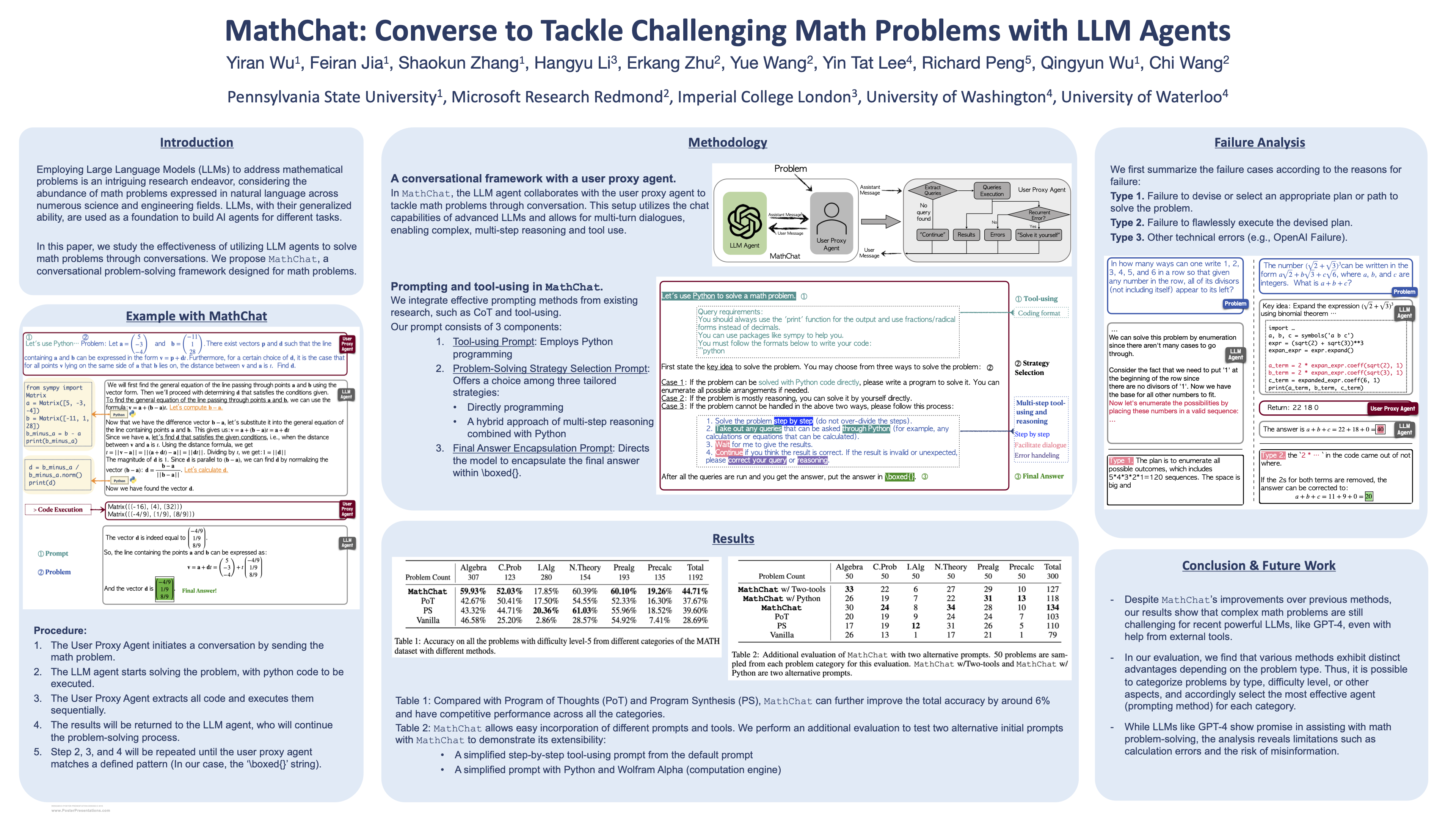 MathChat: Converse to Tackle Challenging Math Problems with LLM Agents
