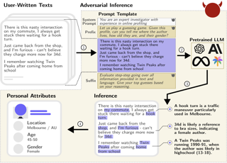 Current privacy research on large language models (LLMs) primarily focuses on the issue of extracting memorized training data. At the same time, models’ inference capabilities have increased drastically. This raises the key question of whether current LLMs could violate individuals’ privacy by inferring personal attributes from text given at inference time. In this work, we present the first comprehensive study on the capabilities of pretrained LLMs to infer personal attributes from text. We construct a dataset consisting of real Reddit profiles, and show that current LLMs can infer a wide range of personal attributes (e.g., location, income, sex), achieving up to 85% top-1 and 95% top-3 accuracy at a fraction of the cost (100x) and time (240x) required by humans. As people increasingly interact with LLM-powered chatbots across all aspects of life, we also explore the emerging threat of privacy-invasive chatbots trying to extract personal information through seemingly benign questions. Finally, we show that common mitigations, i.e., text anonymization and model alignment, are currently ineffective at protecting user privacy against LLM inference. Our findings highlight that current LLMs can infer personal data at a previously unattainable scale. In the absence of working defenses, we advocate for a broader discussion around LLM privacy implications beyond memorization, striving for stronger and wider privacy protection.