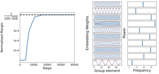 Feature emergence via margin maximization: case studies in algebraic tasks