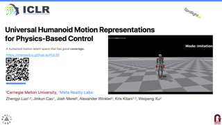 Motion trajectories offer reliable references for physics-based motion learning but suffer from sparsity, particularly in regions that lack sufficient data coverage. To address this challenge, we introduce a self-supervised, structured representation and generation method that extracts spatial-temporal relationships in periodic or quasi-periodic motions. The motion dynamics in a continuously parameterized latent space enable our method to enhance the interpolation and generalization capabilities of motion learning algorithms. The motion learning controller, informed by the motion parameterization, operates online tracking of a wide range of motions, including targets unseen during training. With a fallback mechanism, the controller dynamically adapts its tracking strategy and automatically resorts to safe action execution when a potentially risky target is proposed. By leveraging the identified spatial-temporal structure, our work opens new possibilities for future advancements in general motion representation and learning algorithms.