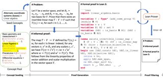 Recent large language models (LLMs) have witnessed significant advancement in various tasks, including mathematical reasoning and theorem proving. As these two tasks require strict and formal multi-step inference, they are appealing domains for exploring the reasoning ability of LLMs but still face important challenges. Previous studies such as Chain-of-Thought (CoT) have revealed the effectiveness of intermediate steps guidance. However, such step-wise annotation requires heavy labor, leading to insufficient training steps for current benchmarks. To fill this gap, this work introduces MUSTARD, a data generation framework that masters uniform synthesis of theorem and proof data of high quality and diversity. MUSTARD synthesizes data in three stages: (1) It samples a few mathematical concept seeds as the problem category. (2) Then, it prompts a generative language model with the sampled concepts to obtain both the problems and their step-wise formal solutions. (3) Lastly, the framework utilizes a proof assistant (e.g., Lean Prover) to filter the valid proofs. With the proposed MUSTARD, we present a theorem-and-proof benchmark MUSTARDSAUCE with 5,866 valid data points. Each data point contains an informal statement, an informal proof, and a translated formal proof that passes the prover validation. We perform extensive analysis and demonstrate that MUSTARD generates validated high-quality step-by-step data. We further apply the MUSTARDSAUCE for fine-tuning smaller language models. The fine-tuned Llama 2-7B achieves a 15.41% average relative performance gain in automated theorem proving, and 8.18% in math word problems. Codes and data are available at https://github.com/Eleanor-H/MUSTARD.