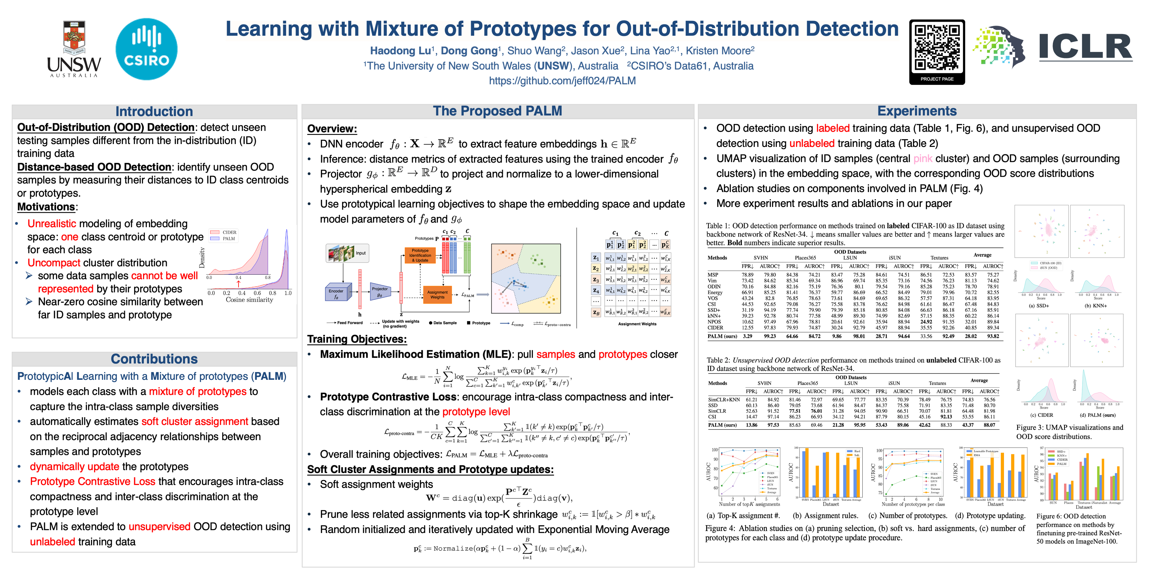 Out-of-distribution (OOD) detection aims to detect testing samples far away from the in-distribution (ID) training data, which is crucial for the safe deployment of machine learning models in the real world. Distance-based OOD detection methods have emerged with enhanced deep representation learning. They identify unseen OOD samples by measuring their distances from ID class centroids or prototypes. However, existing approaches learn the representation relying on oversimplified data assumptions, e.g. modeling ID data of each class with one centroid class prototype or using loss functions not designed for OOD detection, which overlook the natural diversities within the data. Naively enforcing data samples of each class to be compact around only one prototype leads to inadequate modeling of realistic data and limited performance. To tackle these issues, we propose PrototypicAl Learning with a Mixture of prototypes (PALM) that models each class with multiple prototypes to capture the sample diversities, which learns more faithful and compact samples embeddings for enhanching OOD detection. Our method automatically identifies and dynamically updates prototypes, assigning each sample to a subset of prototypes via reciprocal neighbor soft assignment weights. To learn embeddings with multiple prototypes, PALM optimizes a maximum likelihood estimation (MLE) loss to encourage the sample embeddings to compact around the associated prototypes, as well as a contrastive loss on all prototypes to enhance intra-class compactness and inter-class discrimination at the prototype level. Compared to previous methods with prototypes, the proposed mixture prototype modeling of PALM promotes the representations of each ID class to be more compact and separable from others and the unseen OOD samples, resulting in more reliable OOD detection. Moreover, the automatic estimation of prototypes enables our approach to be extended to the challenging OOD detection task with unlabelled ID data. Extensive experiments demonstrate the superiority of PALM over previous methods, achieving state-of-the-art average AUROC performance of 93.82 on the challenging CIFAR-100 benchmark.