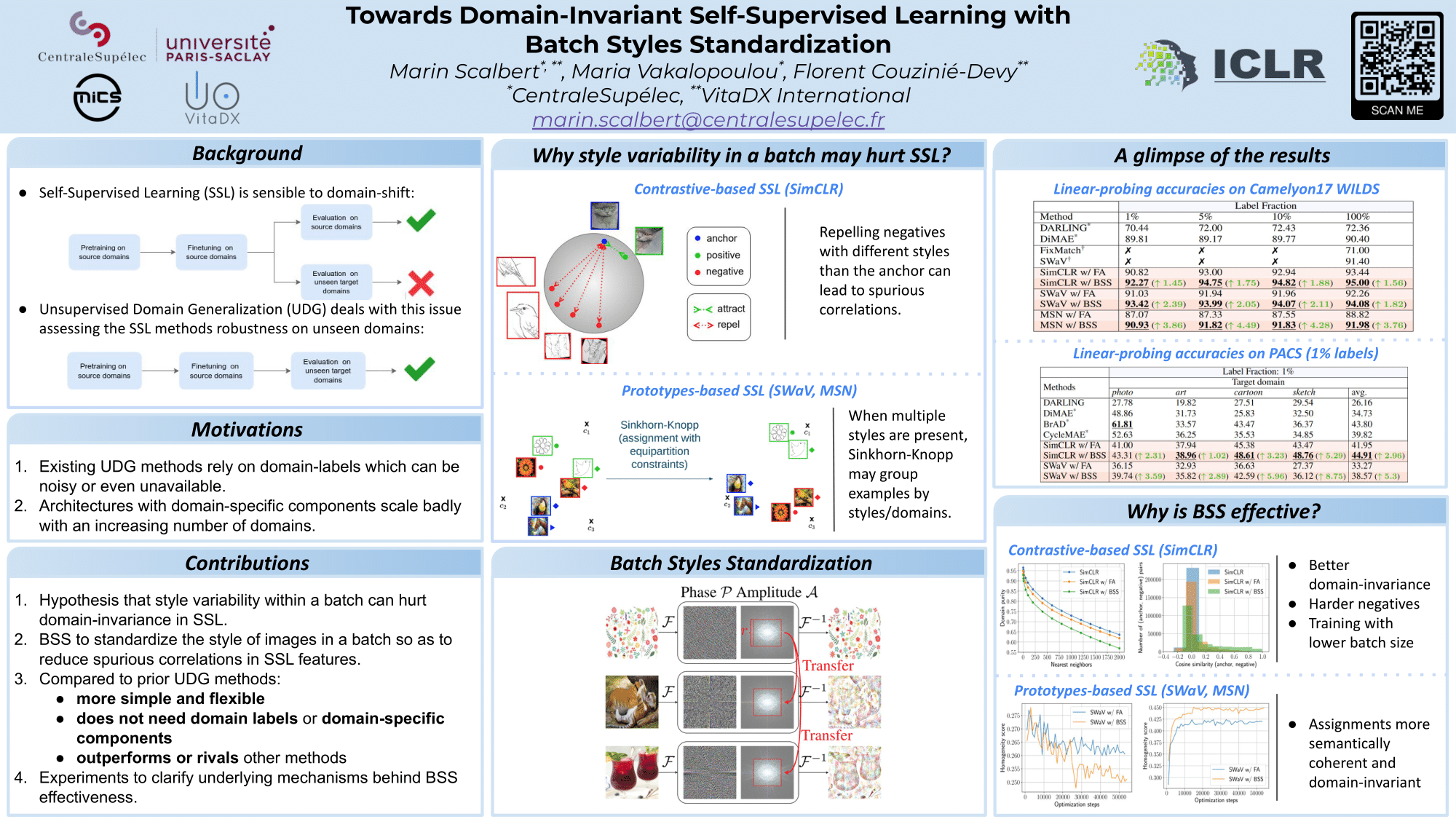 Towards domain-invariant Self-Supervised Learning with Batch Styles Standardization