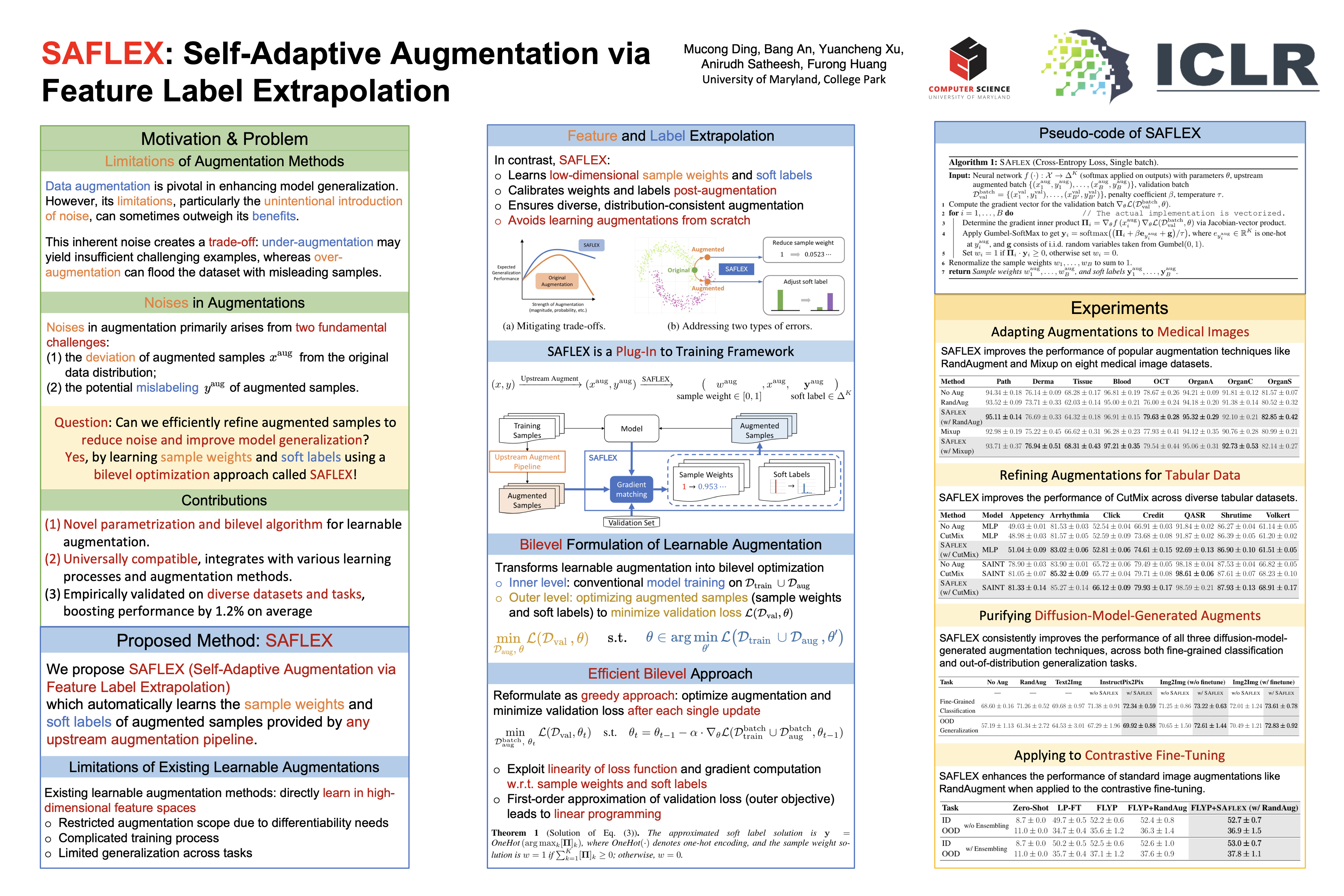 SAFLEX: Self-Adaptive Augmentation via Feature Label Extrapolation