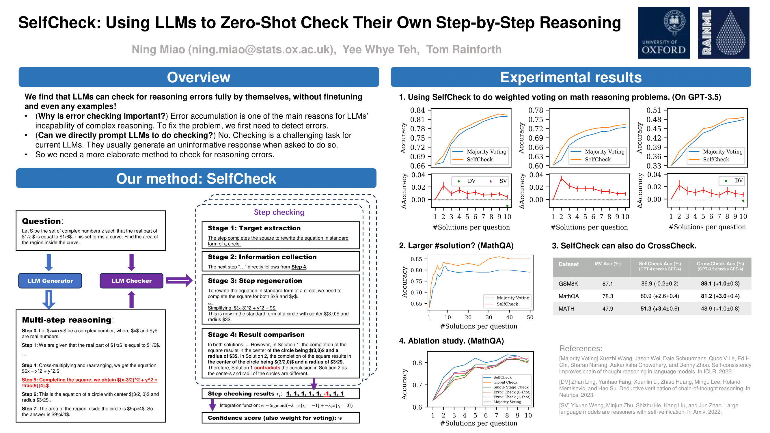 SelfCheck: Using LLMs to Zero-Shot Check Their Own Step-by-Step Reasoning