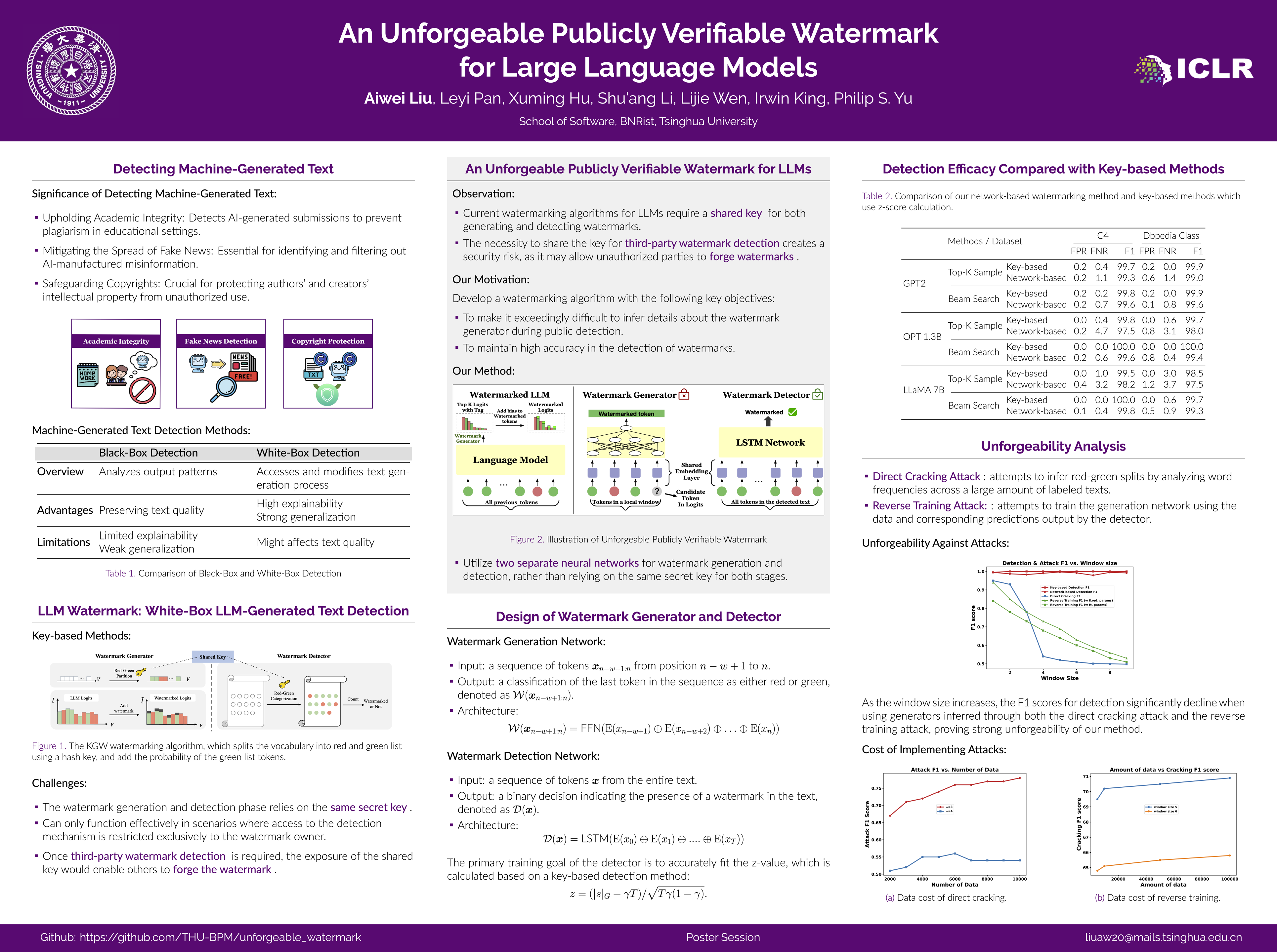 Recently, text watermarking algorithms for large language models (LLMs) have been proposed to mitigate the potential harms of text generated by LLMs, including fake news and copyright issues. However, current watermark detection algorithms require the secret key used in the watermark generation process, making them susceptible to security breaches and counterfeiting during public detection.To address this limitation, we propose an unforgeable publicly verifiable watermark algorithm named UPV that uses two different neural networks for watermark generation and detection, instead of using the same key at both stages. Meanwhile, the token embedding parameters are shared between the generation and detection networks, which makes the detection network achieve a high accuracy very efficiently.Experiments demonstrate that our algorithm attains high detection accuracy and computational efficiency through neural networks. Subsequent analysis confirms the high complexity involved in forging the watermark from the detection network. Our code is available at https://github.com/THU-BPM/unforgeable_watermark