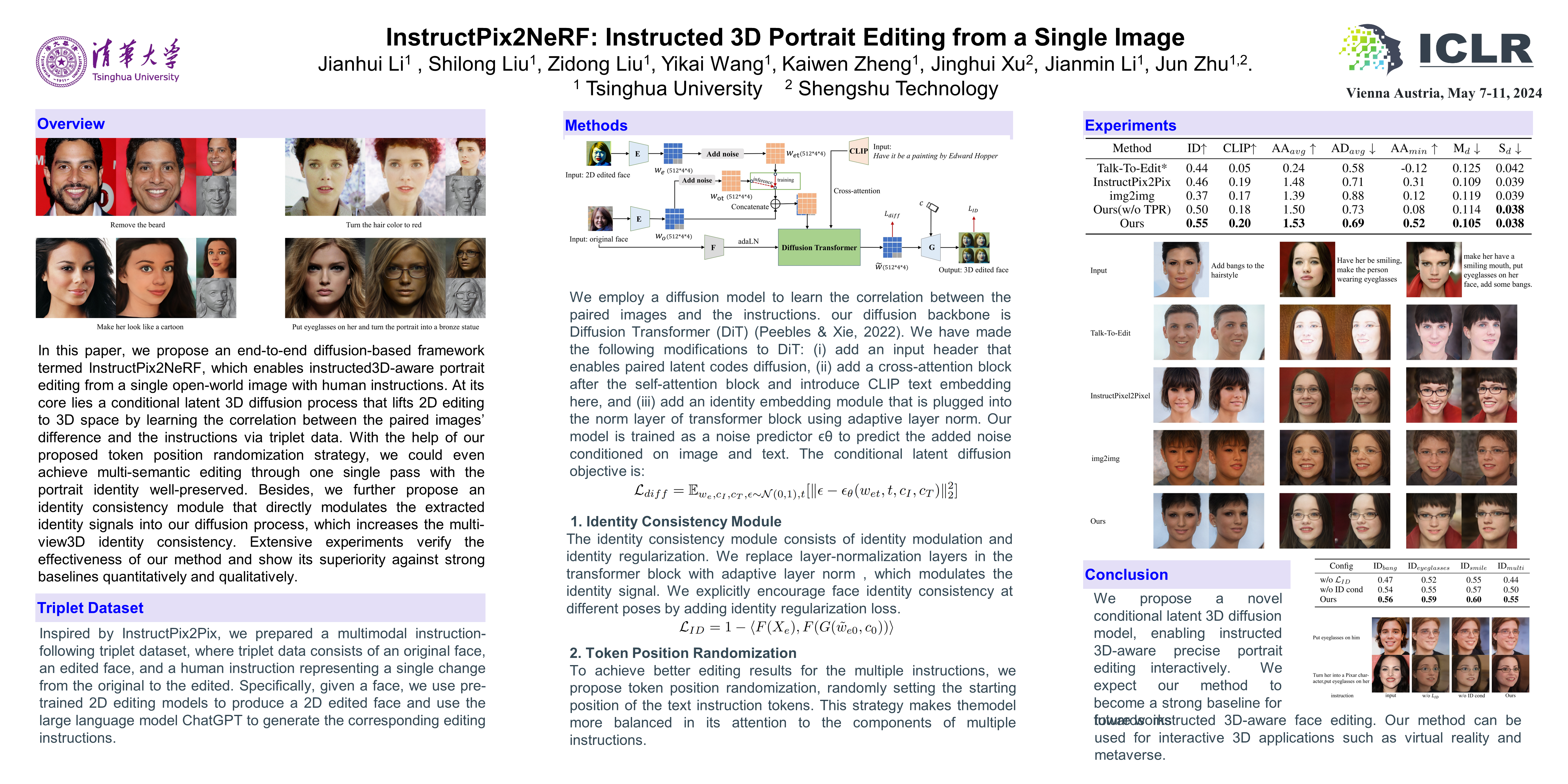 InstructPix2NeRF: Instructed 3D Portrait Editing from a Single Image