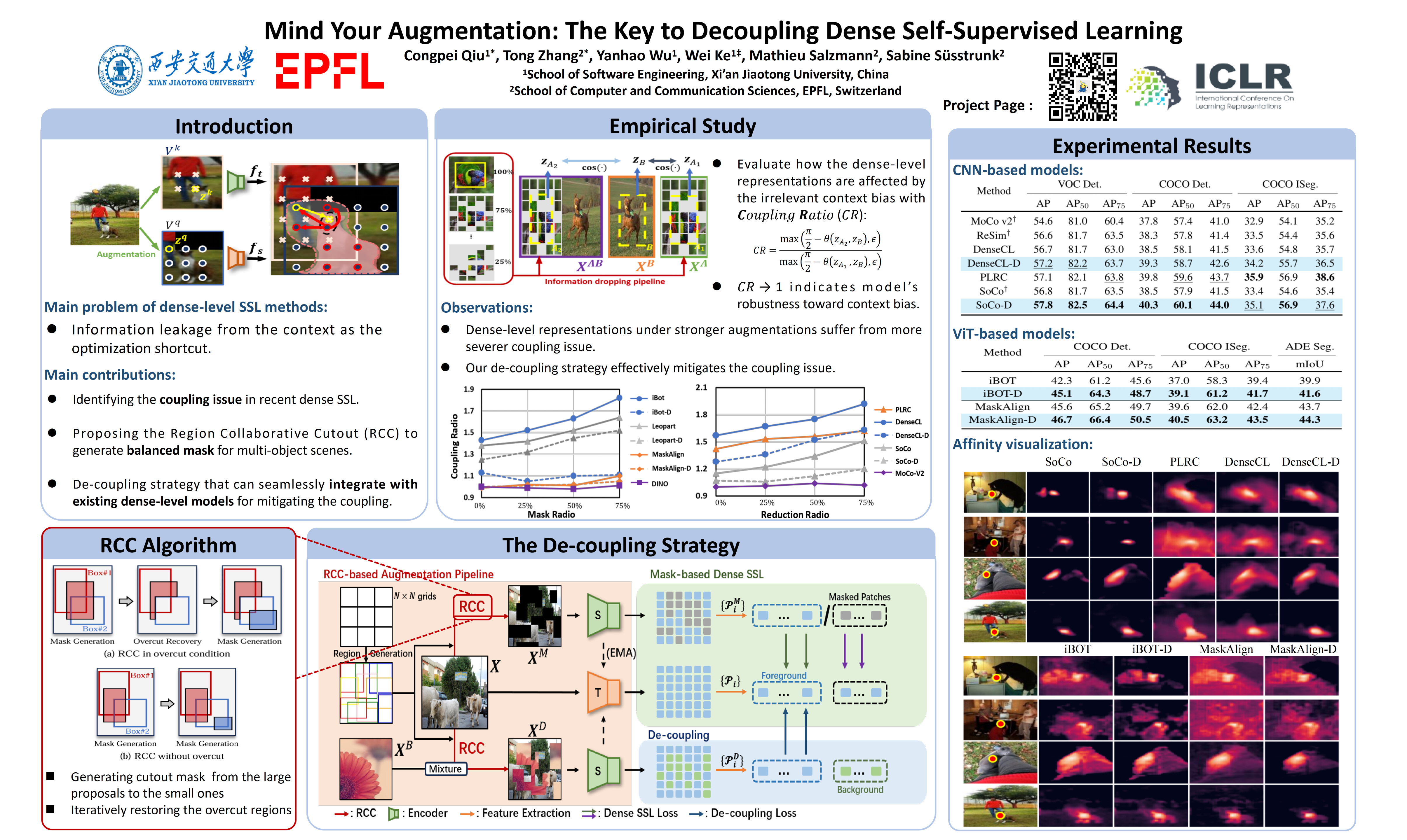Dense Self-Supervised Learning (SSL) creates positive pairs by building positive paired regions or points, thereby aiming to preserve local features, for example of individual objects. However, existing approaches tend to couple objects by leaking information from the neighboring contextual regions when the pairs have a limited overlap. In this paper, we first quantitatively identify and confirm the existence of such a coupling phenomenon. We then address it by developing a remarkably simple yet highly effective solution comprising a novel augmentation method, Region Collaborative Cutout (RCC), and a corresponding decoupling branch. Importantly, our design is versatile and can be seamlessly integrated into existing SSL frameworks, whether based on Convolutional Neural Networks (CNNs) or Vision Transformers (ViTs). We conduct extensive experiments, incorporating our solution into two CNN-based and two ViT-based methods, with results confirming the effectiveness of our approach. Moreover, we provide empirical evidence that our method significantly contributes to the disentanglement of feature representations among objects, both in quantitative and qualitative terms.