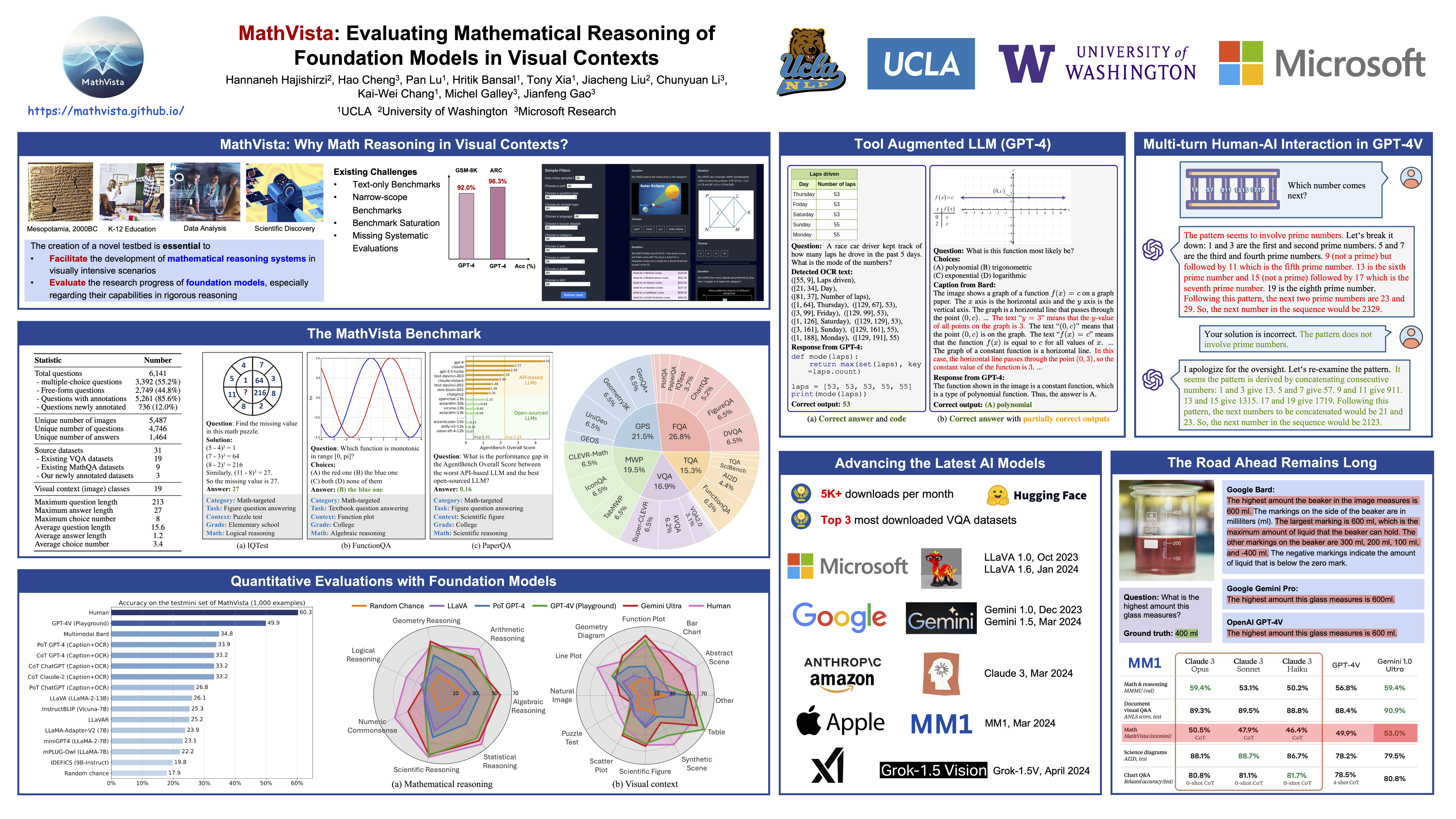 MathVista: Evaluating Mathematical Reasoning of Foundation Models in Visual Contexts