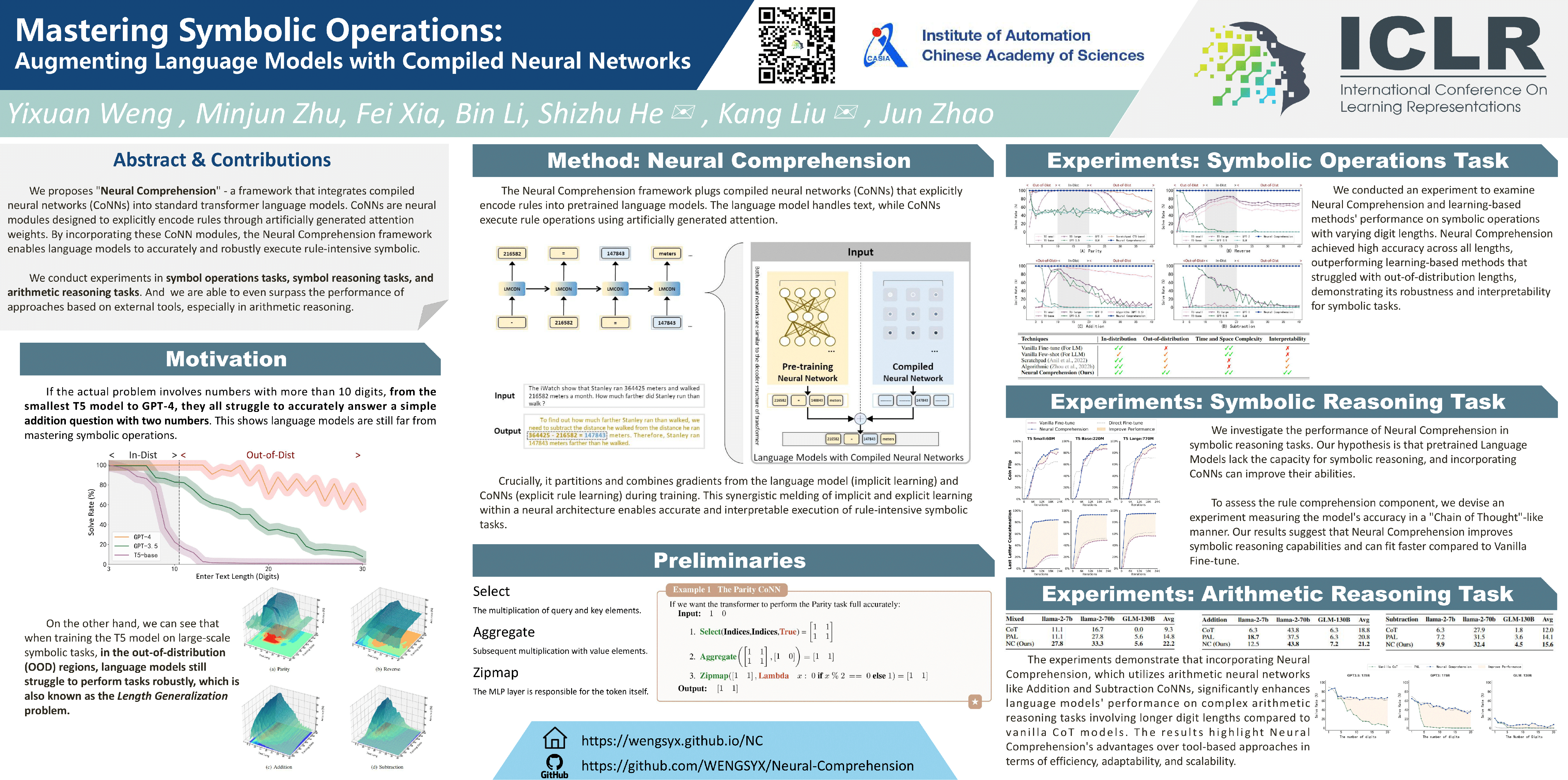 Language models' (LMs) proficiency in handling deterministic symbolic reasoning and rule-based tasks remains limited due to their dependency implicit learning on textual data. To endow LMs with genuine rule comprehension abilities, we propose "Neural Comprehension" - a framework that synergistically integrates compiled neural networks (CoNNs) into the standard transformer architecture. CoNNs are neural modules designed to explicitly encode rules through artificially generated attention weights. By incorporating CoNN modules, the Neural Comprehension framework enables LMs to accurately and robustly execute rule-intensive symbolic tasks. Extensive experiments demonstrate the superiority of our approach over existing techniques in terms of length generalization, efficiency, and interpretability for symbolic operations. Furthermore, it can be applied to LMs across different model scales, outperforming tool-calling methods in arithmetic reasoning tasks while maintaining superior inference efficiency. Our work highlights the potential of seamlessly unifying explicit rule learning via CoNNs and implicit pattern learning in LMs, paving the way for true symbolic comprehension capabilities. The code is released at: \url{https://github.com/wengsyx/Neural-Comprehension}.