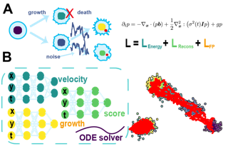 Reconstructing dynamics using samples from sparsely time-resolved snapshots is an important problem in both natural sciences and machine learning. Here, we introduce a new deep learning approach for solving regularized unbalanced optimal transport (RUOT) and inferring continuous unbalanced stochastic dynamics from observed snapshots. Based on the RUOT form, our method models these dynamics without requiring prior knowledge of growth and death processes or additional information, allowing them to be learned directly from data. Theoretically, we explore the connections between the RUOT and Schrödinger bridge problem and discuss the key challenges and potential solutions. The effectiveness of our method is demonstrated with a synthetic gene regulatory network, high-dimensional Gaussian Mixture Model, and single-cell RNA-seq data from blood development. Compared with other methods, our approach accurately identifies growth and transition patterns, eliminates false transitions, and constructs the Waddington developmental landscape. Our code is available at: https://github.com/zhenyiizhang/DeepRUOT.