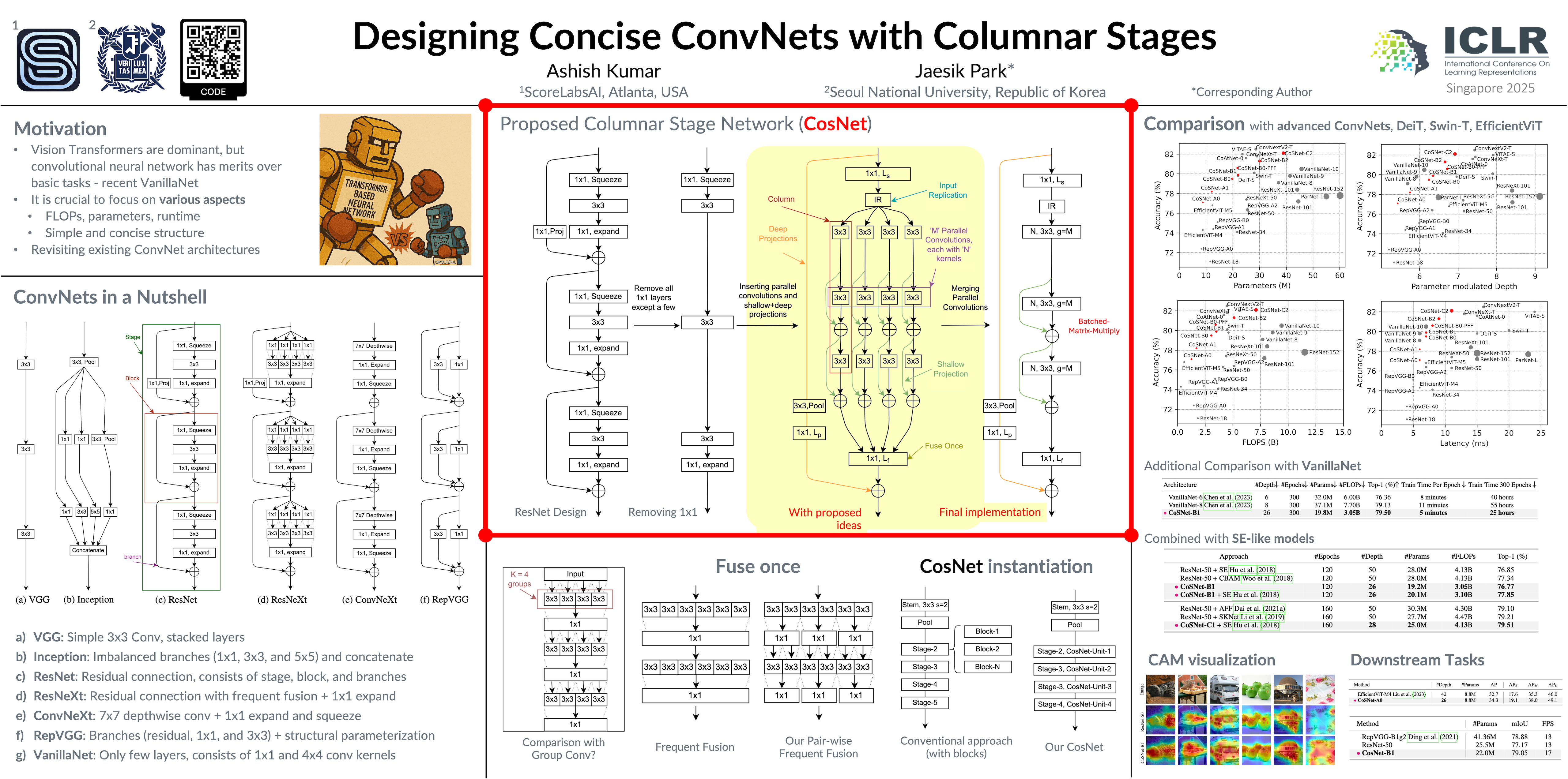In the era of vision Transformers, the recent success of VanillaNet shows the hugepotential of simple and concise convolutional neural networks (ConvNets). Wheresuch models mainly focus on runtime, it is also crucial to simultaneously focuson other aspects, e.g., FLOPs, parameters, etc, to strengthen their utility further.To this end, we introduce a refreshing ConvNet macro design called ColumnarStage Network (CoSNet). CoSNet has a systematically developed simple andconcise structure, smaller depth, low parameter count, low FLOPs, and attention-less operations, well suited for resource-constrained deployment. The key noveltyof CoSNet is deploying parallel convolutions with fewer kernels fed by inputreplication, using columnar stacking of these convolutions, and minimizing the useof 1×1 convolution layers. Our comprehensive evaluations show that CoSNet rivalsmany renowned ConvNets and Transformer designs under resource-constrainedscenarios. Pretrained models shall be open-sourced.