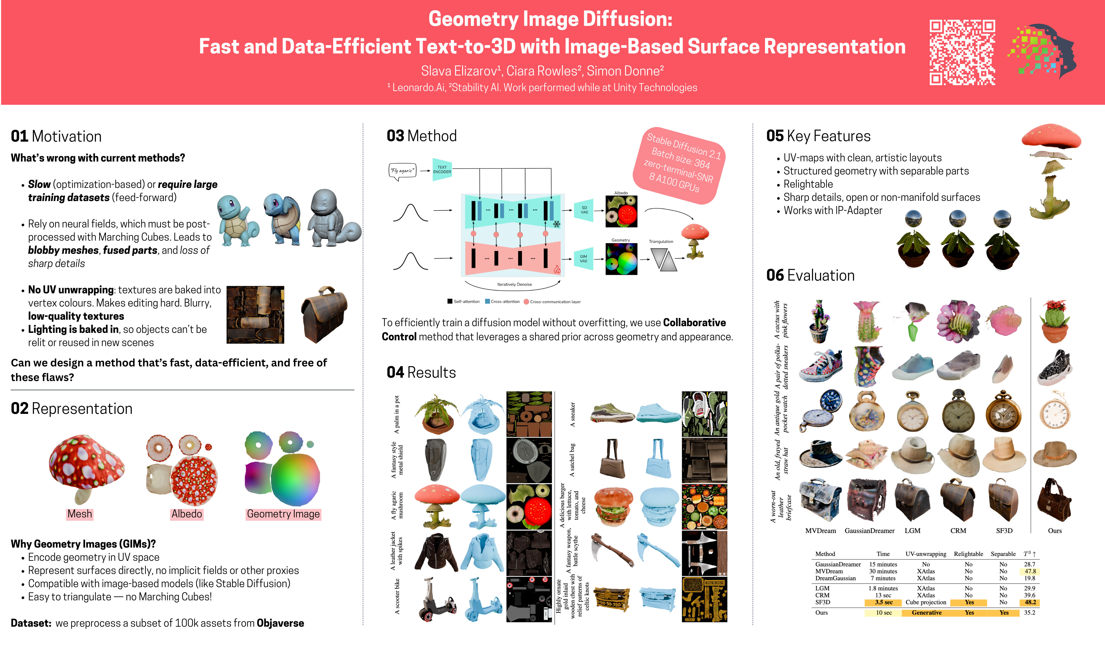 Generating high-quality 3D objects from textual descriptions remains a challenging problem due to high computational costs, the scarcity of 3D data, and the complexity of 3D representations. We introduce Geometry Image Diffusion (GIMDiffusion), a novel Text-to-3D model that utilizes geometry images to efficiently represent 3D shapes using 2D images, thereby avoiding the need for complex 3D-aware architectures. By integrating a Collaborative Control mechanism, we exploit the rich 2D priors of existing Text-to-Image models, such as Stable Diffusion, to achieve strong generalization despite limited 3D training data. This allows us to use only high-quality training data while retaining compatibility with guidance techniques such as IPAdapter. GIMDiffusion enables the generation of 3D assets at speeds comparable to current Text-to-Image models, without being restricted to manifold meshes during either training or inference. We simultaneously generate a UV unwrapping for the objects, consisting of semantically meaningful parts as well as internal structures, enhancing both usability and versatility.