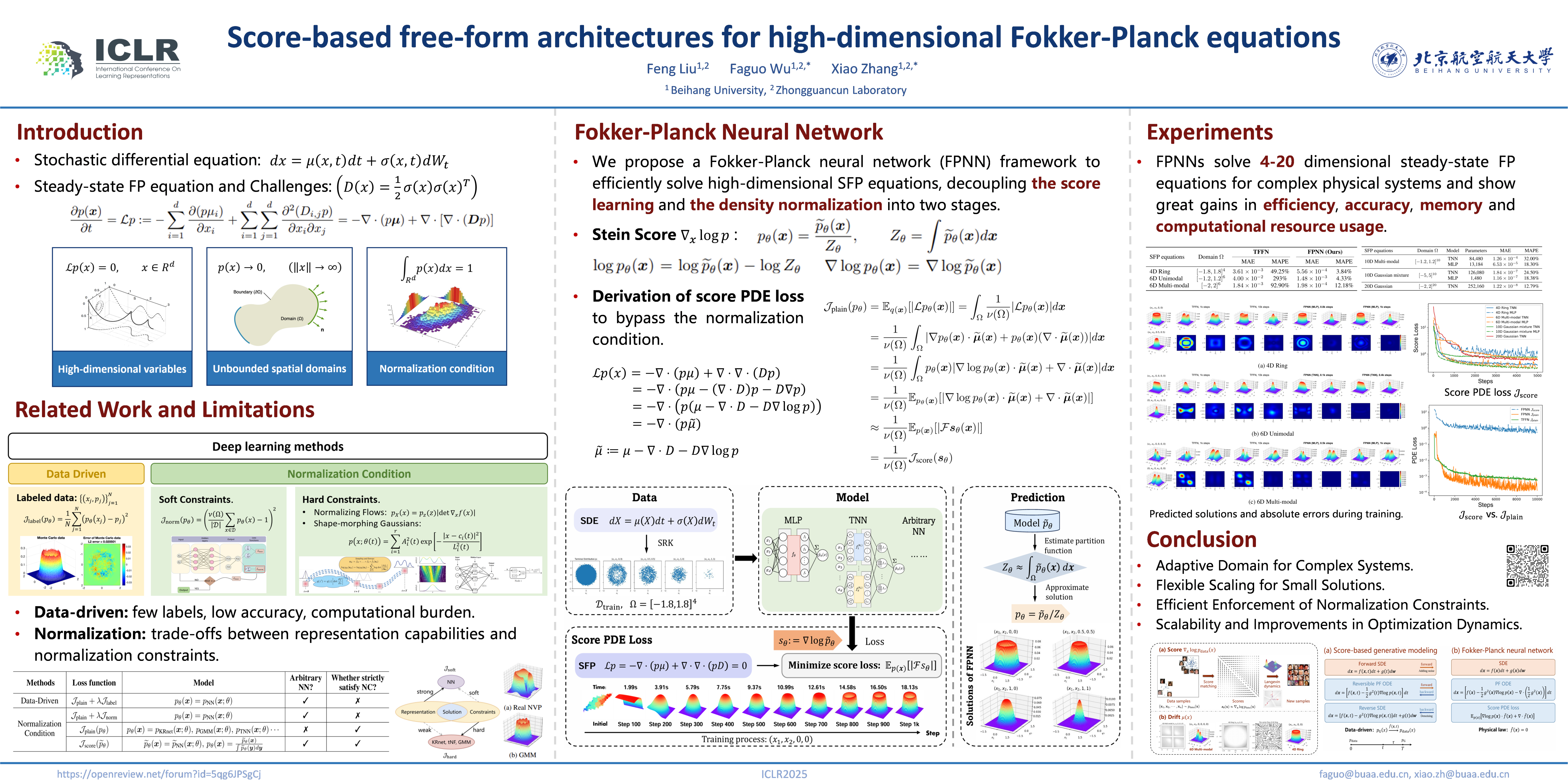 Score-based free-form architectures for high-dimensional Fokker-Planck equations