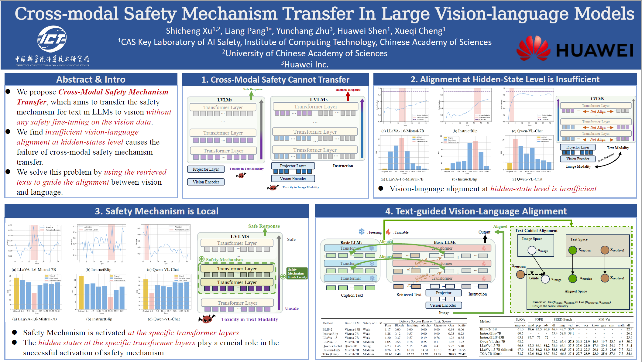Vision-language alignment in Large Vision-Language Models (LVLMs) successfully enables LLMs to understand visual input. However, we find that existing vision-language alignment methods fail to transfer the existing safety mechanism for text in LLMs to vision, which leads to vulnerabilities in toxic image. To explore the cause of this problem, we give the insightful explanation of where and how the safety mechanism of LVLMs operates and conduct comparative analysis between text and vision. We find that the hidden states at the specific transformer layers play a crucial role in the successful activation of safety mechanism, while the vision-language alignment at hidden states level in current methods is insufficient. This results in a semantic shift for input images compared to text in hidden states, therefore misleads the safety mechanism. To address this, we propose a novel Text-Guided vision-language Alignment method (TGA) for LVLMs. TGA retrieves the texts related to input vision and uses them to guide the projection of vision into the hidden states space in LLMs. Experiments show that \textbf{TGA} not only successfully transfers the safety mechanism for text in basic LLMs to vision in vision-language alignment for LVLMs without any safety fine-tuning on the visual modality but also maintains the general performance on various vision tasks (Safe and Good). Code is in supplemental material and will be released on GitHub after acceptance.