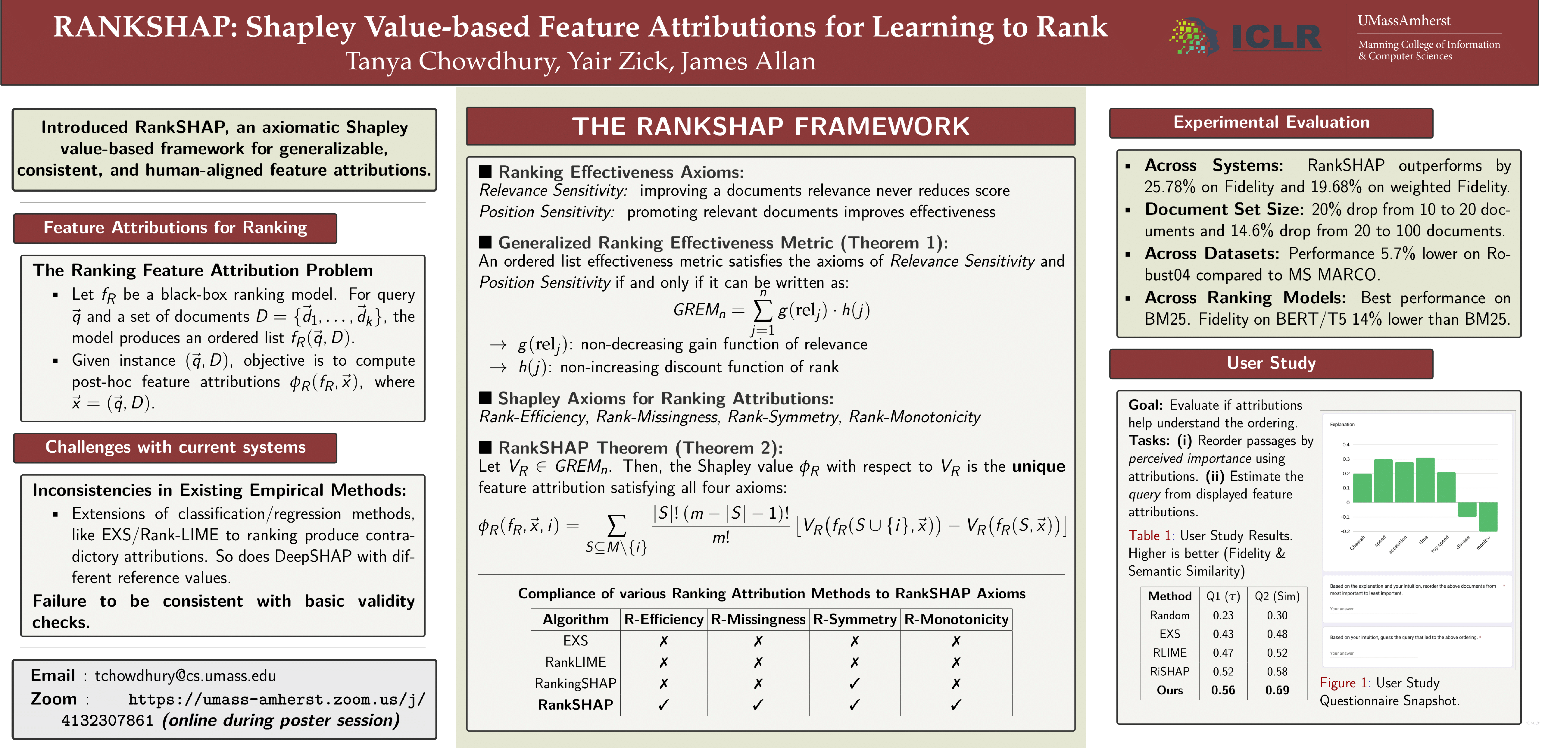 Numerous works propose post-hoc, model-agnostic explanations for learning to rank, focusing on ordering entities by their relevance to a query through feature attribution methods. However, these attributions often weakly correlate or contradict each other, confusing end users. We adopt an axiomatic game-theoretic approach, popular in the feature attribution community, to identify a set of fundamental axioms that every ranking-based feature attribution method should satisfy. We then introduce Rank-SHAP, extending classical Shapley values to ranking. We evaluate the RankSHAP framework through extensive experiments on two datasets, multiple ranking methods and evaluation metrics. Additionally, a user study confirms RankSHAP’s alignment with human intuition. We also perform an axiomatic analysis of existing rank attribution algorithms to determine their compliance with our proposed axioms. Ultimately, our aim is to equip practitioners with a set of axiomatically backed feature attribution methods for studying IR ranking models, that ensure generality as well as consistency.